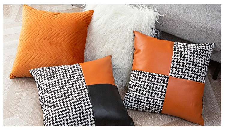 45X45cm квадратный роскошный оранжевый чехол для подушки из искусственной кожи чехол для подушки на талию наволочки черный белый чехол для подушки