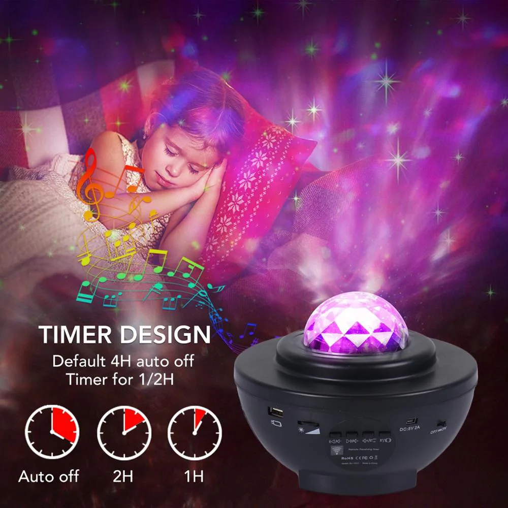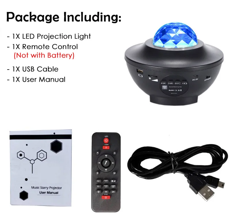 Пульт дистанционного управления и пульт дистанционного управления (Используйте 2 батарейки XAAA-не входят в комплект), не нужно беспокоиться о том, чтобы выйти из кровати или дивана, чтобы включить или выключить Ночной светильник, пульт дистанционного управления также может управлять звездным прожекторным светильник, красочный светильник s, регулировать яркость, свободно включать/выключать лампу, менять светильник в режиме ing, музыкальные песни, таймер.