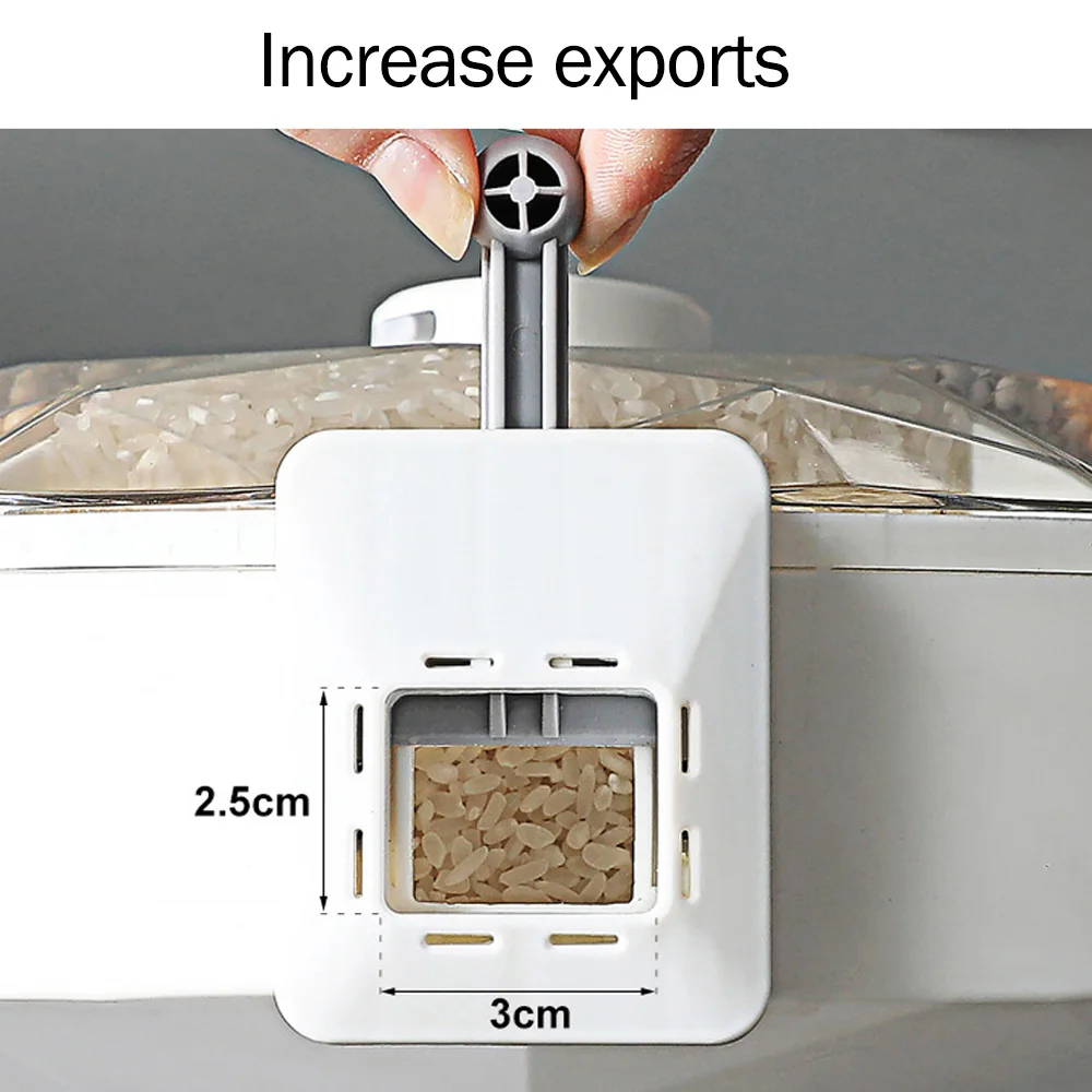 -Широкий спектр применения: диспенсер для пищевых продуктов может держать место для хранения риса и других сухих продуктов, таких как место для хранения муки, орехов, бобов, закусок, зерен, корма для домашних животных, И т. Д. (емкость может варьироваться в зависимости от плотности пищи).