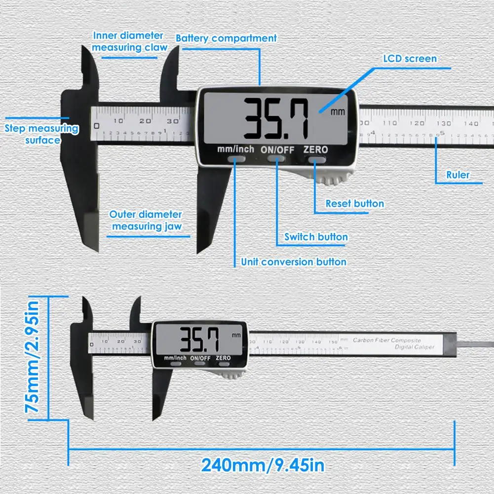 5. Применение: Этот цифровой суппорт является инструментом повседневной жизни, широко используется в школах, домах, лабораториях и фабриках. Настоятельно рекомендуется для самостоятельного и профессионального использования. Подходит не только для инженеров и дизайнеров, но и для детей и пожилых людей.