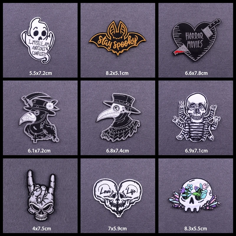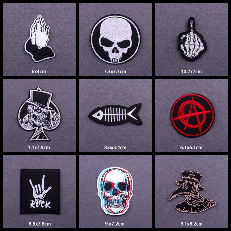 Нашивки с вышивкой черепа в стиле панк-рок, наклейки для одежды, нашивки с скелетом, байкерские нашивки на куртки, одежду, швейные нашивки, значки «сделай сам»