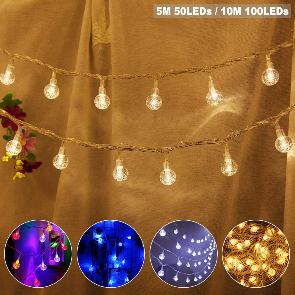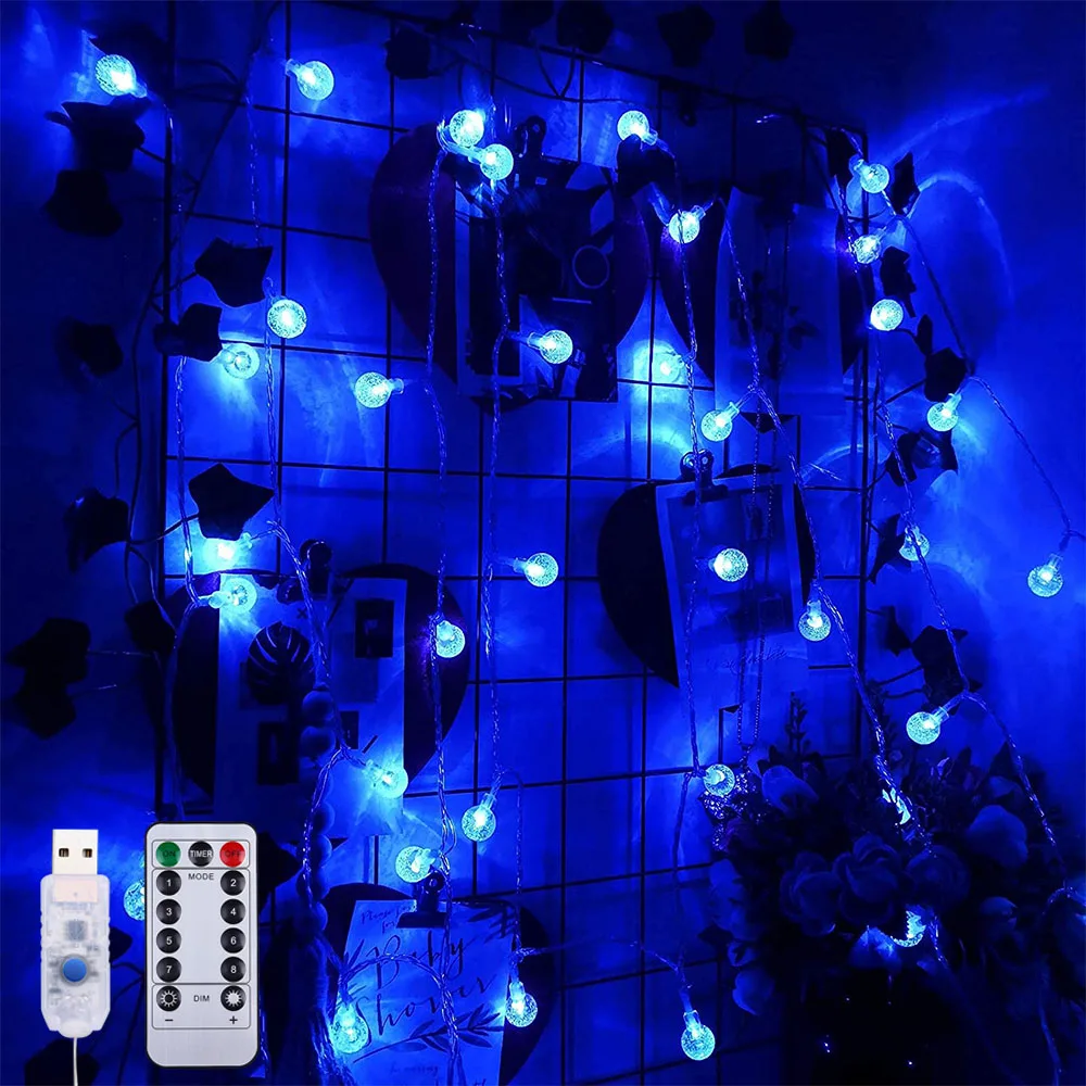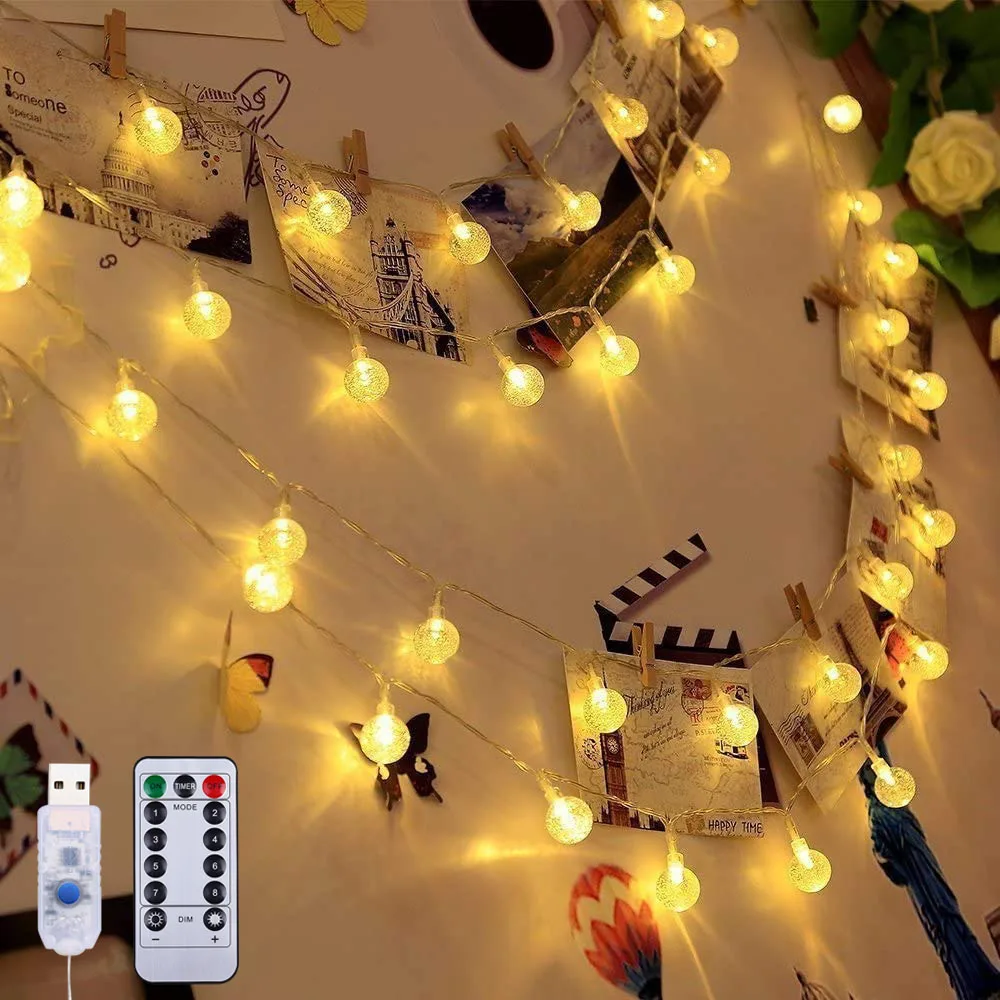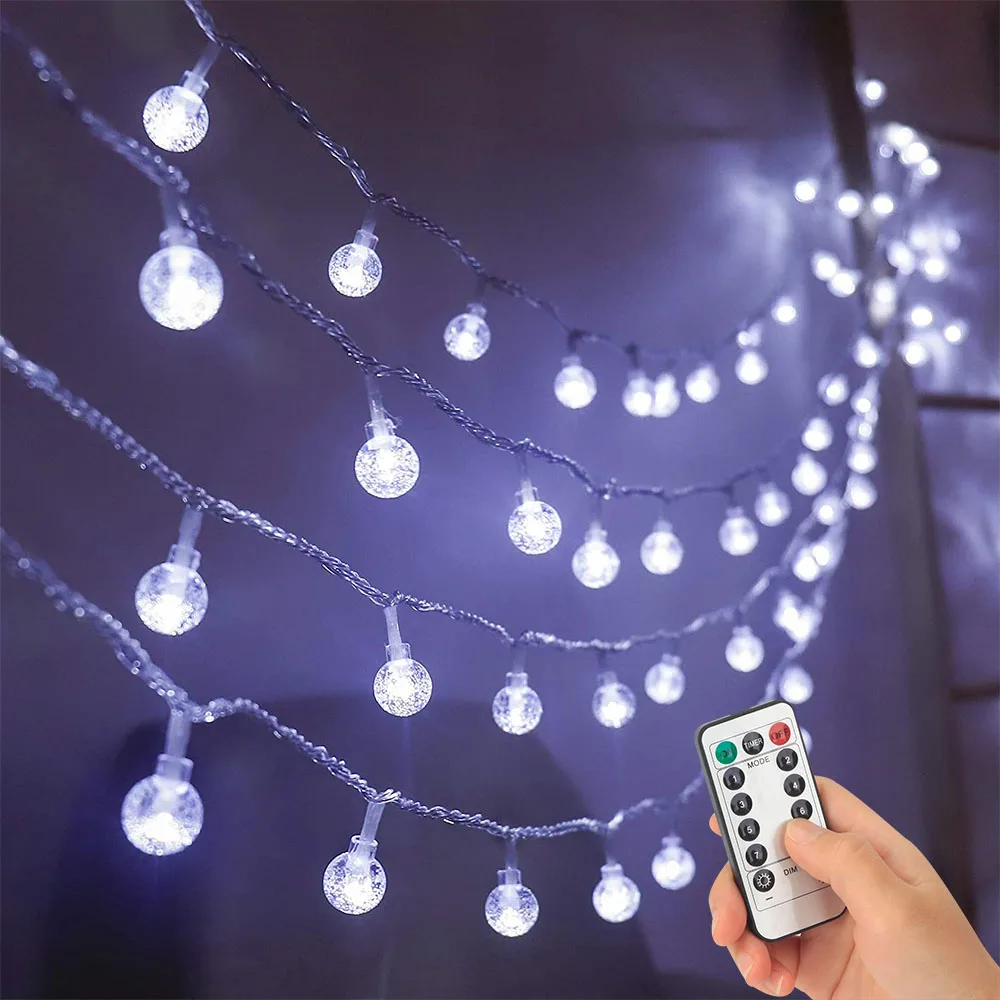 Светодиодная гирлянда с хрустальным шариком, usb-таймер с регулируемой яркостью, 8 режимов, Сказочная шариковая лампа с пультом дистанционного управления, светодиодная гирлянда для внутреннего использования, праздничное освещение для рождества, свадьбы, украшения