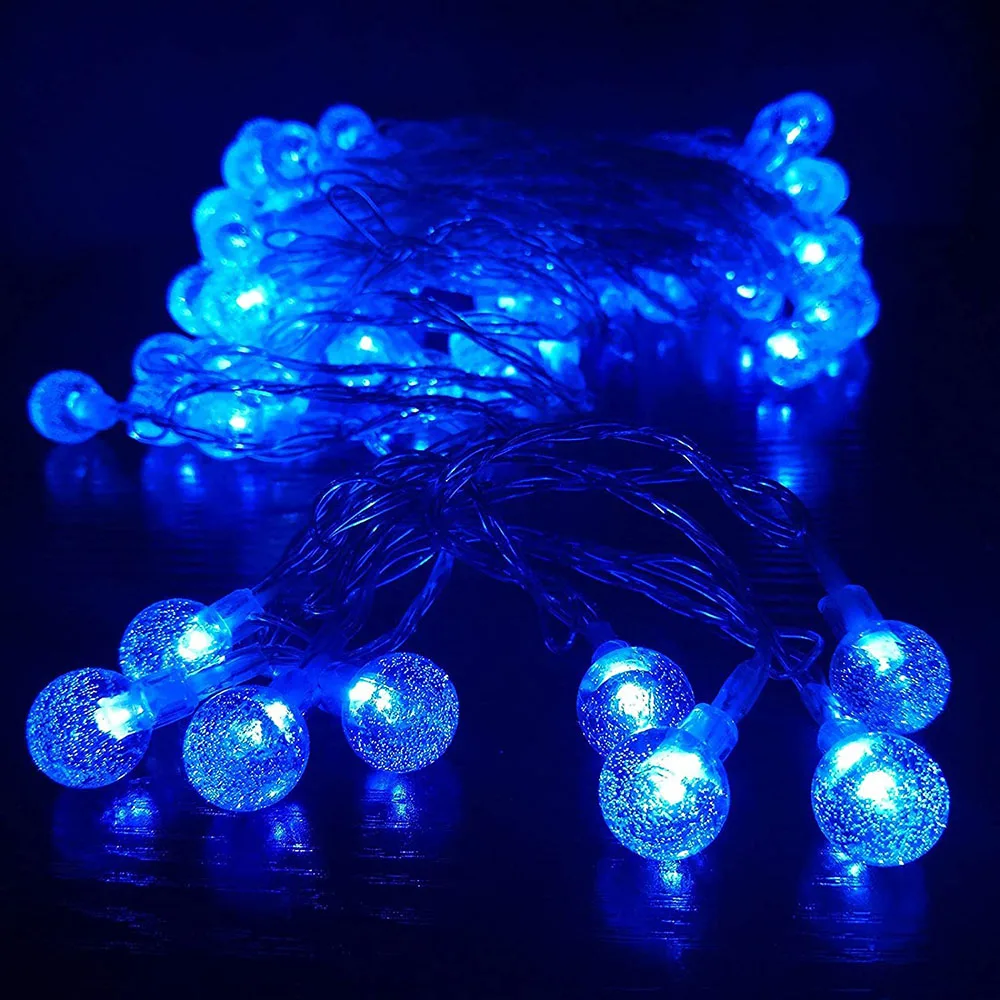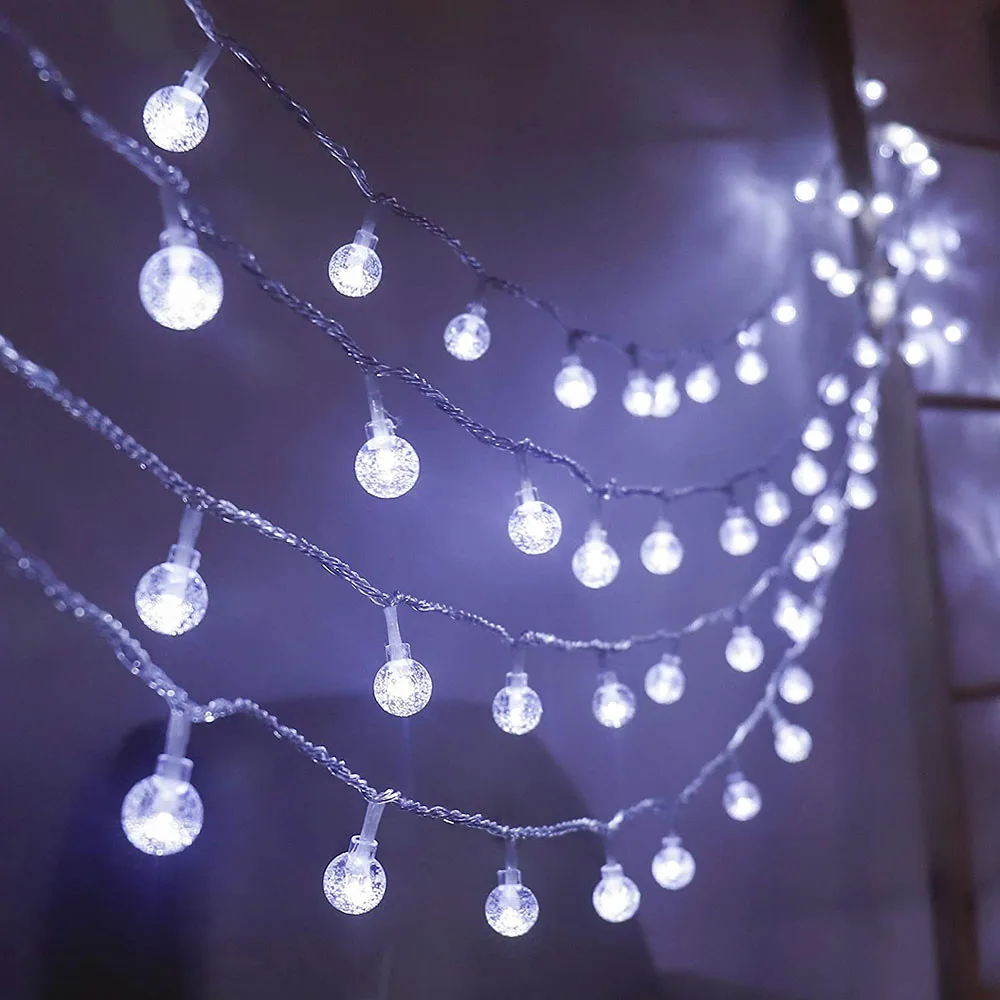 5 м/16,4 фута с 50 светодиодами, 10 м/32,8 фута с 100 светодиодами, достаточно долго для любого использования. Размер хрустального шарика составляет 0,67 дюйма, изготовлен из высококачественного прозрачного ПВХ. 4 дюйма расстояние между каждым хрустальным шариком.
