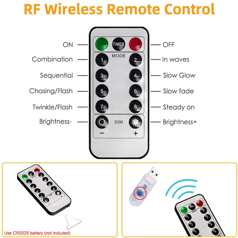 Пульт дистанционного управления: вы можете использовать пульт дистанционного управления для включения/выключения, выберите 8 режимов освещения и Отрегулируйте яркость, как вам нравится. Встроенный чип памяти будет запоминать настройки с последнего времени, не нужно сбрасывать.