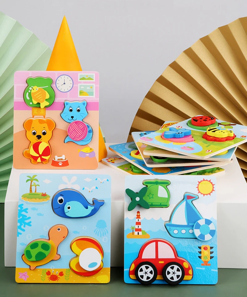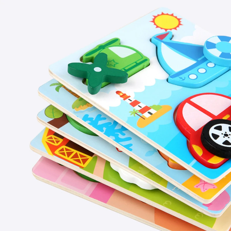 Деревянные пазлы Монтессори, Детские универсальные головоломки, Картонные Игрушки для детей, детские 3D пазлы, Мультяшные животные, детские игрушки
