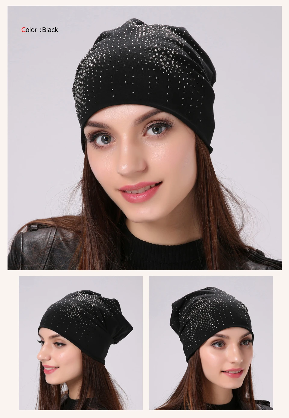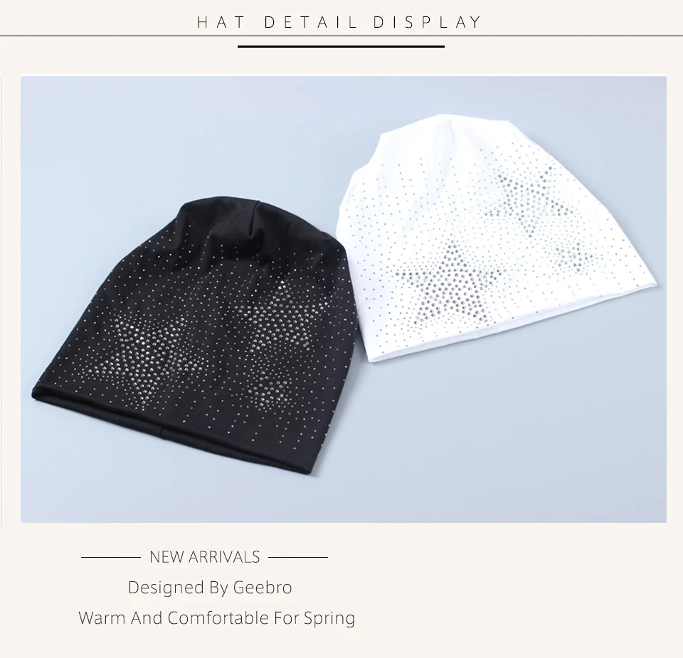 Product Name:Geebro Brand Women's Beanie Hat Fashion Star Shine Rhinestones Beanies Skullies Caps For Ladies Female Casual Plain Bonnets