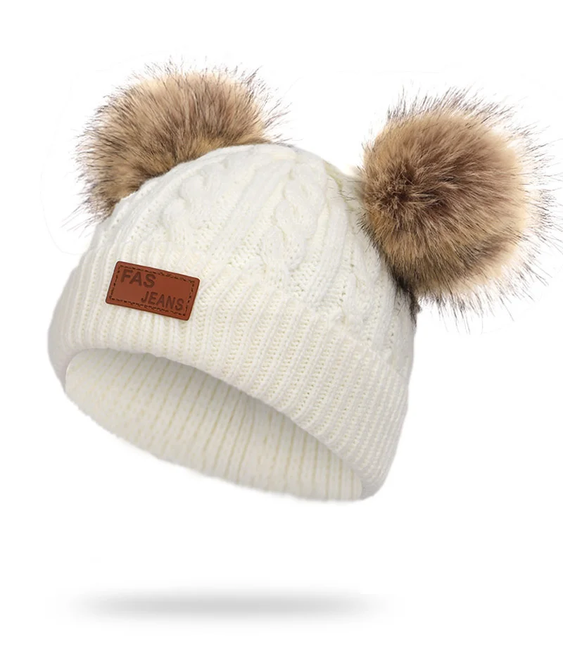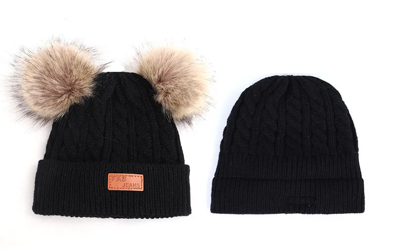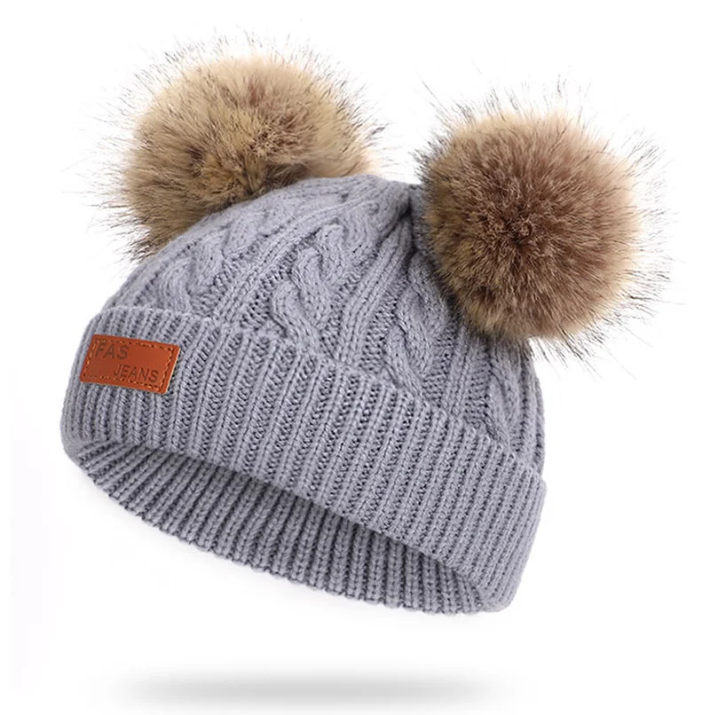 Милый комплект с шапкой и шарфом, Шапка-бини, детские шапки для девочек, искусственный шарик, помпон, плюш, сохраняющий тепло, зимняя вязаная шапка, детская шапка