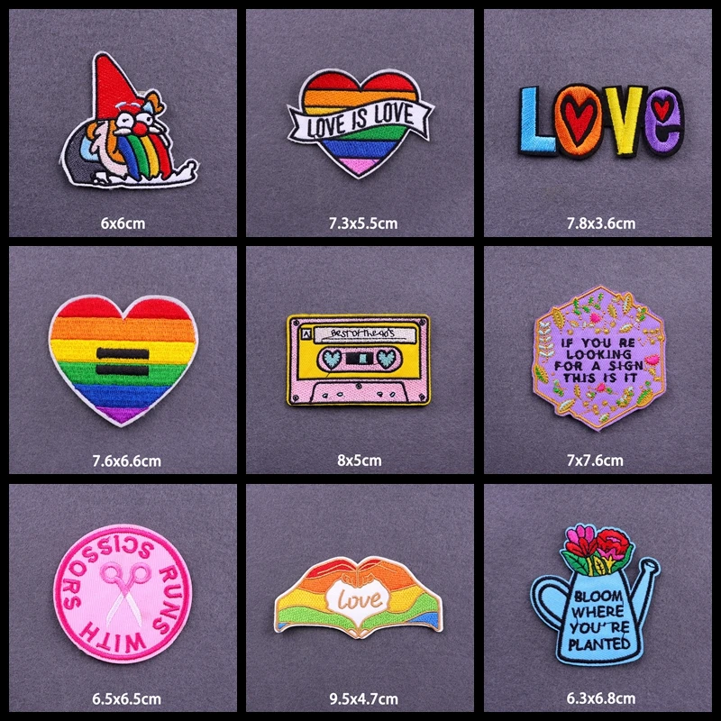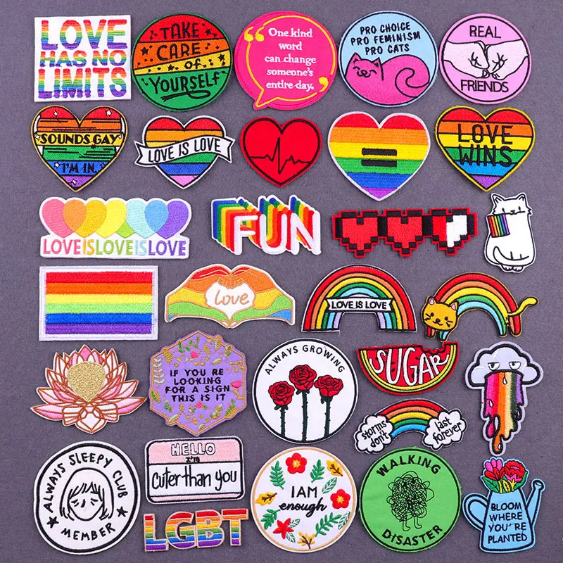Мультфильм любовь буквы аппликация вышитые патчи для одежды термоклейкие патчи с изображением ЛГБТ-радуги патчи на одежду значки DIY