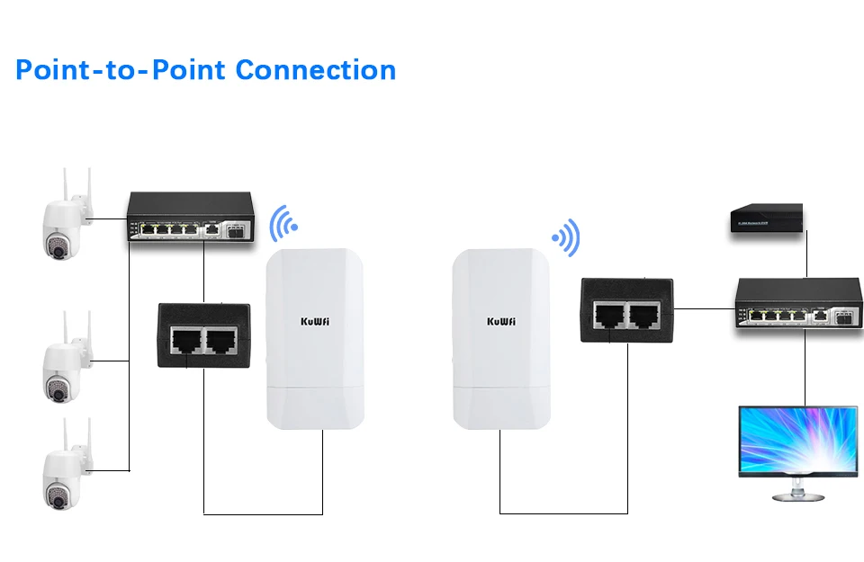 1.KuWFi B400 является 300 Мбит/с открытый беспроводной WiFi мост Поддержка 1-2 км длинный диапазон расширитель со светодиодным дисплеем для настройки PT/PTMP соединения