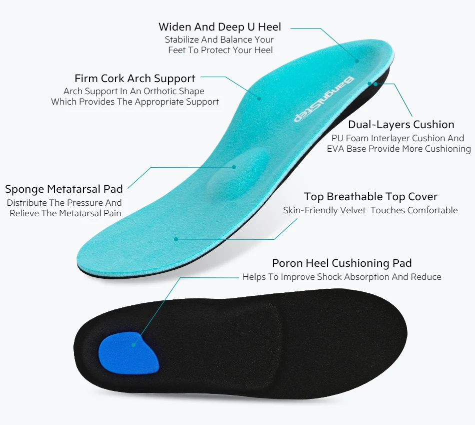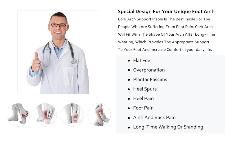 3,5 см пробковой вставкой не деформирующийся хорошее Поддержка браслет Arch от глубокой и Ширина каблук, стабильный стопы Blance улучшить правильного положения тела при передвижении, 0,45 см в передней части Толщина, облегчение боли в ногах в течение длительного времени при ходьбе и повседневные работы.
