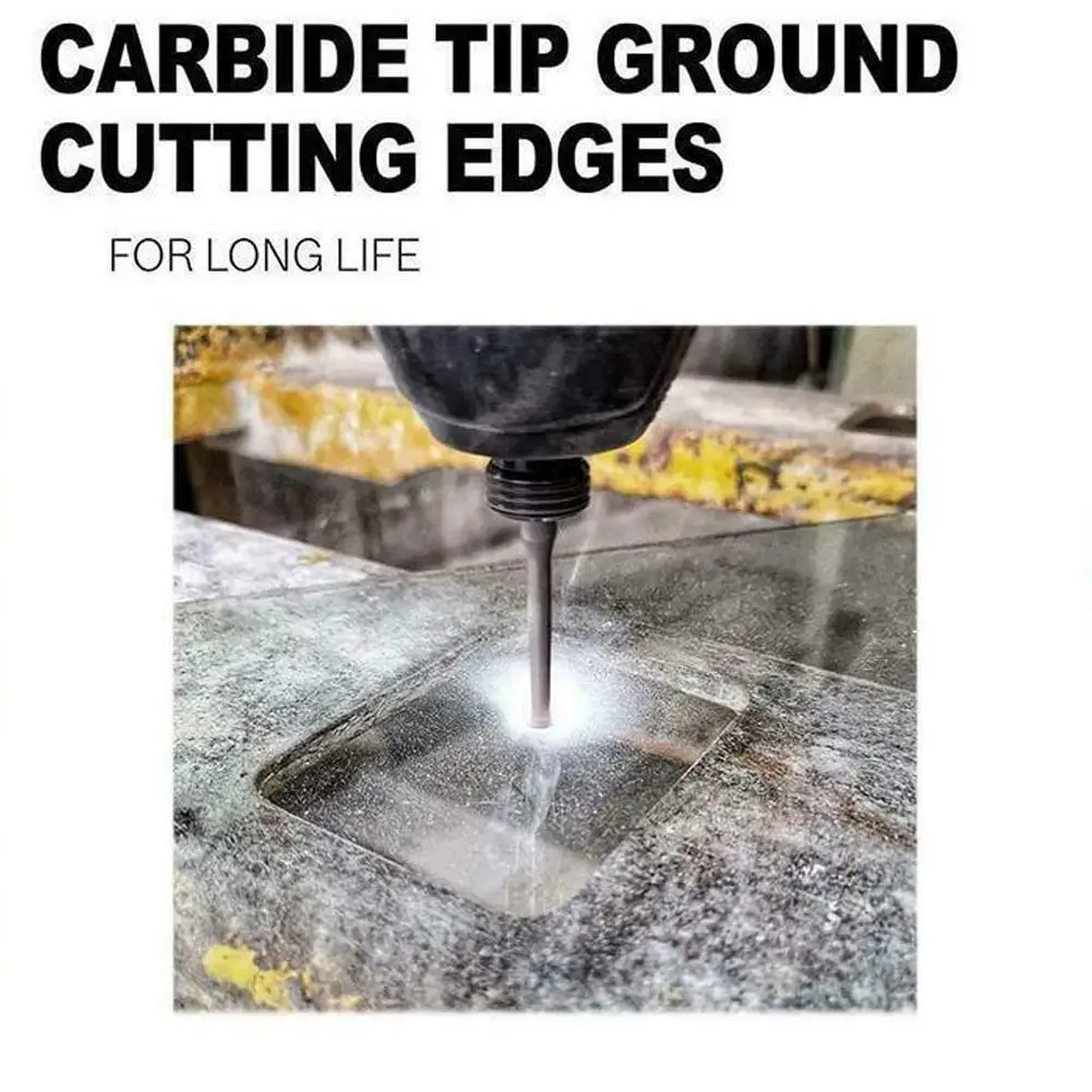 Профессиональные сверла для стекла и плитки обеспечивают плавное и точное сверление керамической плитки, мрамора, тонкой железной пластины, зеркал и стекла. Не забудьте добавить воду или охлаждающую жидкость при сверлении.