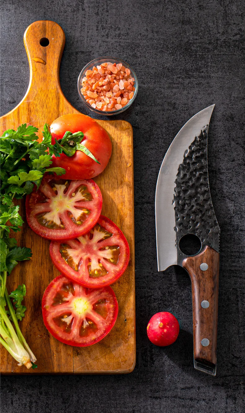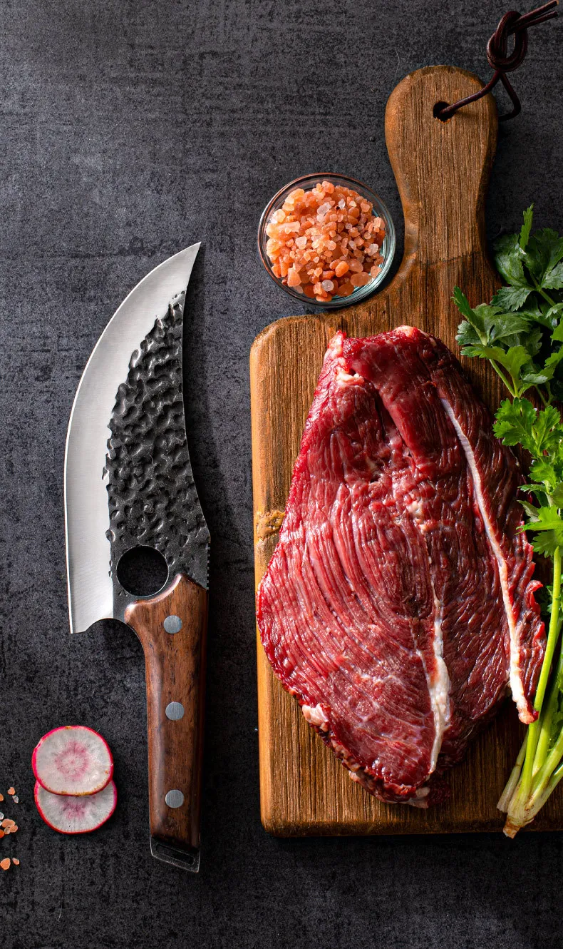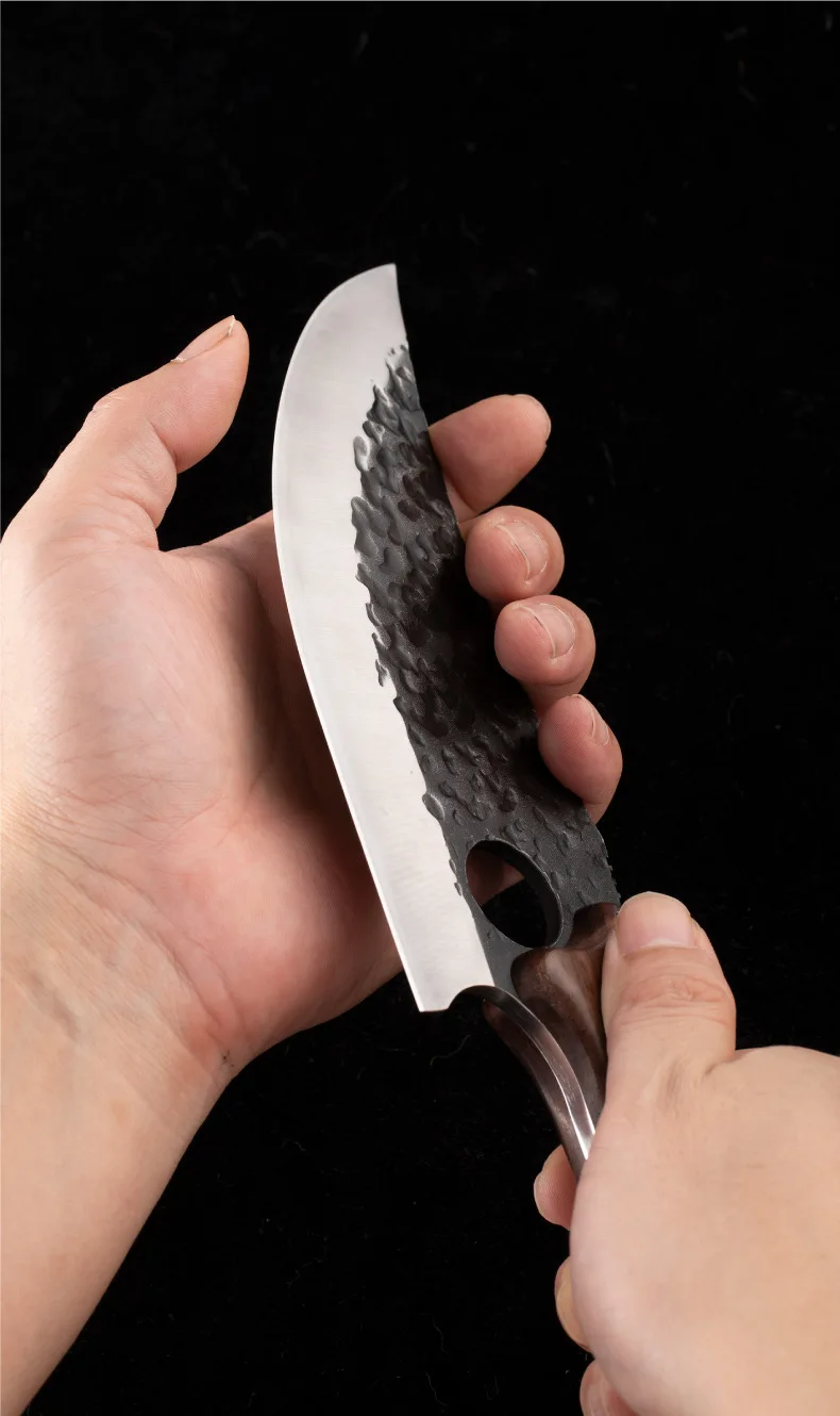 2. Поверхность Ковочного ножа шероховатая, не такая гладкая, как нож, изготовленный машинами, но он действительно показывает характеристики Ковочного ножа.
