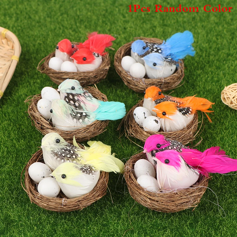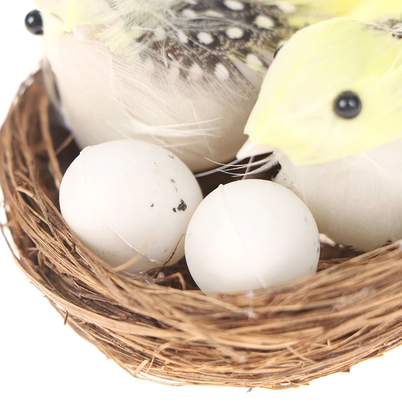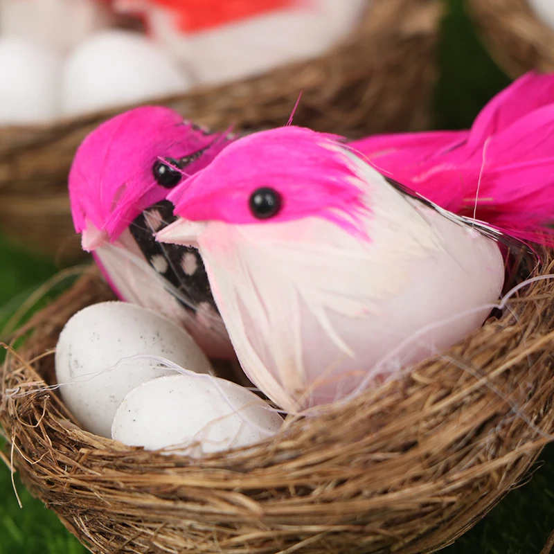 -Два милых маленьких искусственных перьев птиц в соломенном гнезде с яйцом