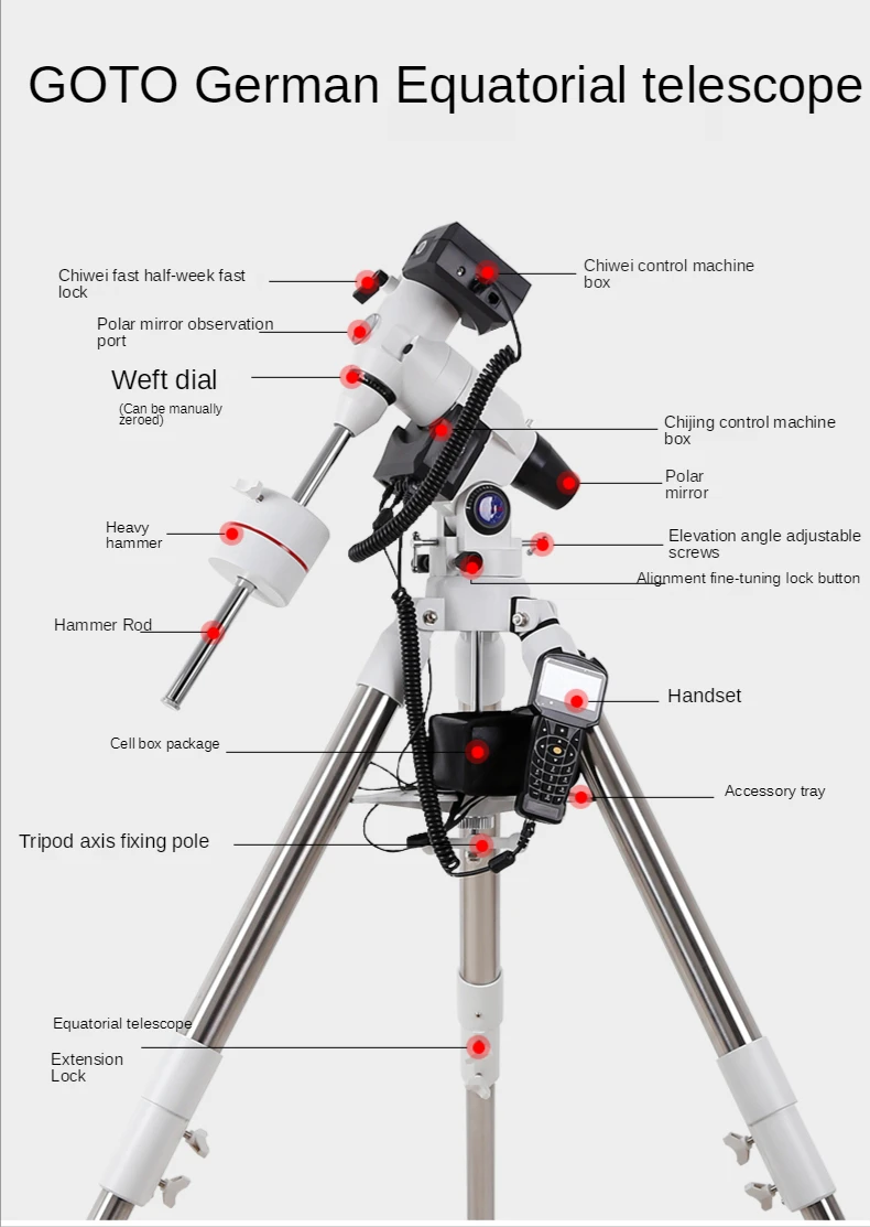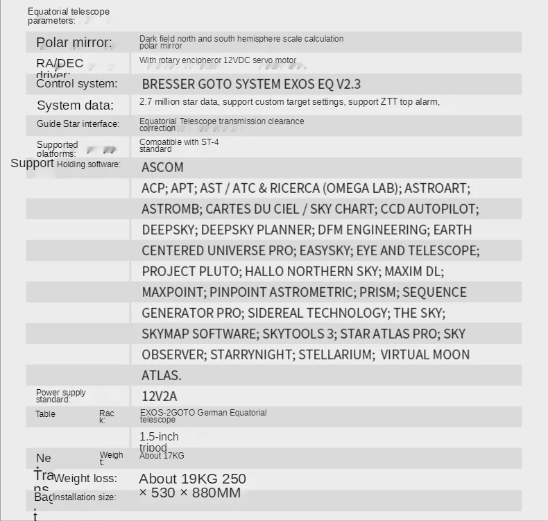 Вес использования: Основное зеркало 2,66 кг, экваториальное крепление 17 кг