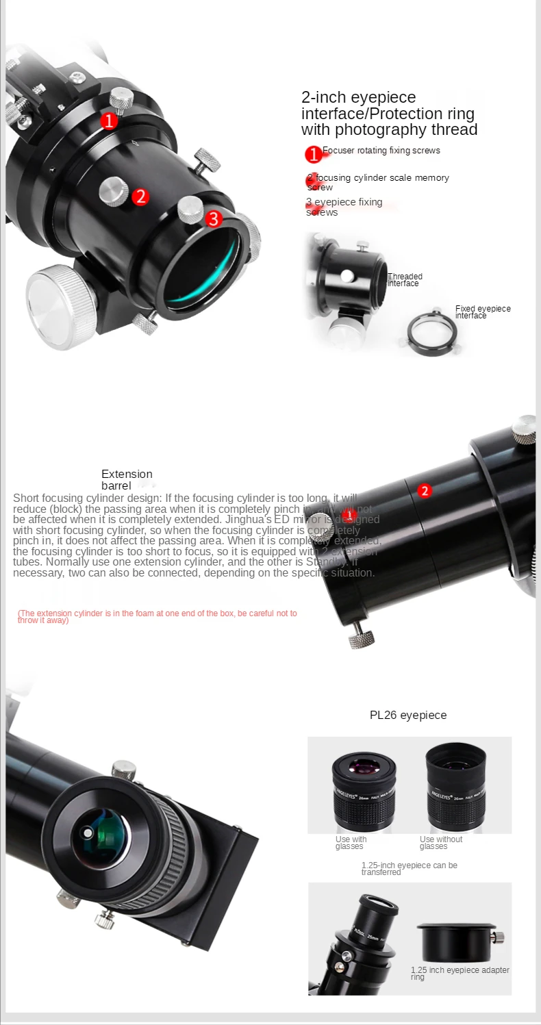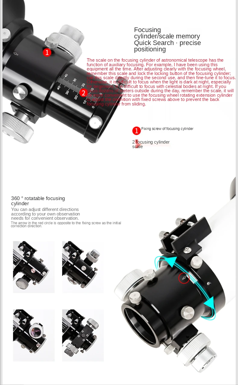 Фокусировка: 2 "" с зубчатым фокусировочным сиденьем и толстой фокусирующей трубкой