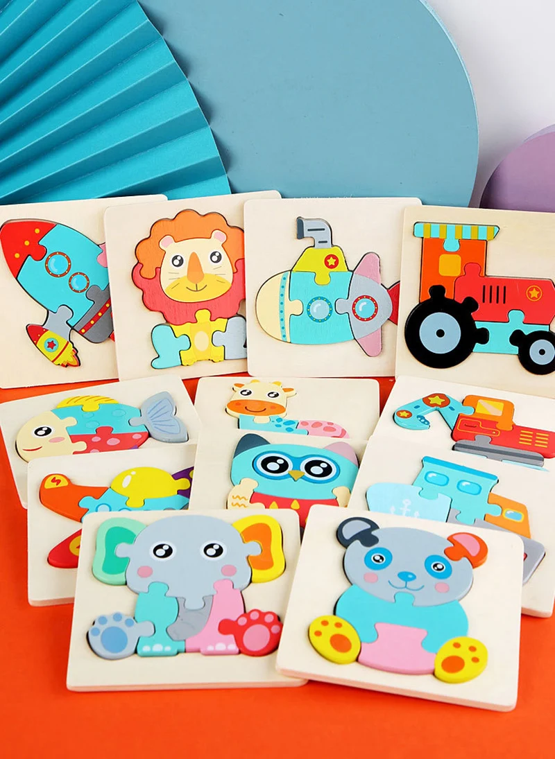 3D деревянные пазлы, детские игрушки Монтессори, Мультяшные животные, Детские пазлы, детские игры, пазлы, развивающие игрушки для малышей