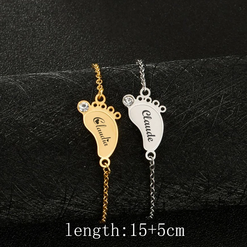 Auxauxme персонализированные Выгравированные имена, дата-браслет для ног, Хрустальный Циркон, нержавеющая сталь, на заказ, именная табличка для мамы, подарки на день рождения