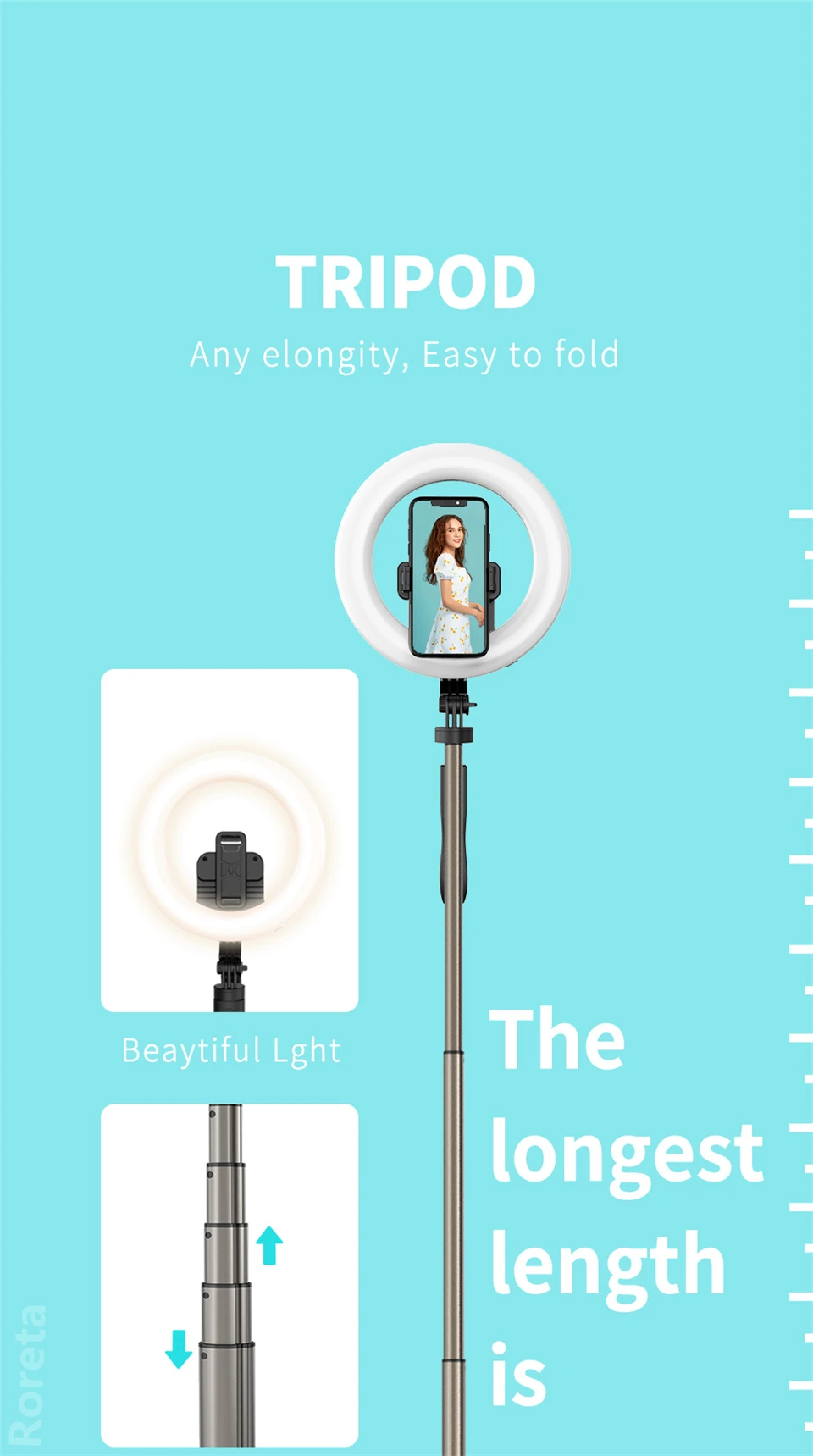 Кольцевой светильник для селфи Roreta 4 в 1, светодиодный ободок для фотосъемки с держателем для мобильного телефона, штатив-подставка, кольцевой светильник для потокового видео