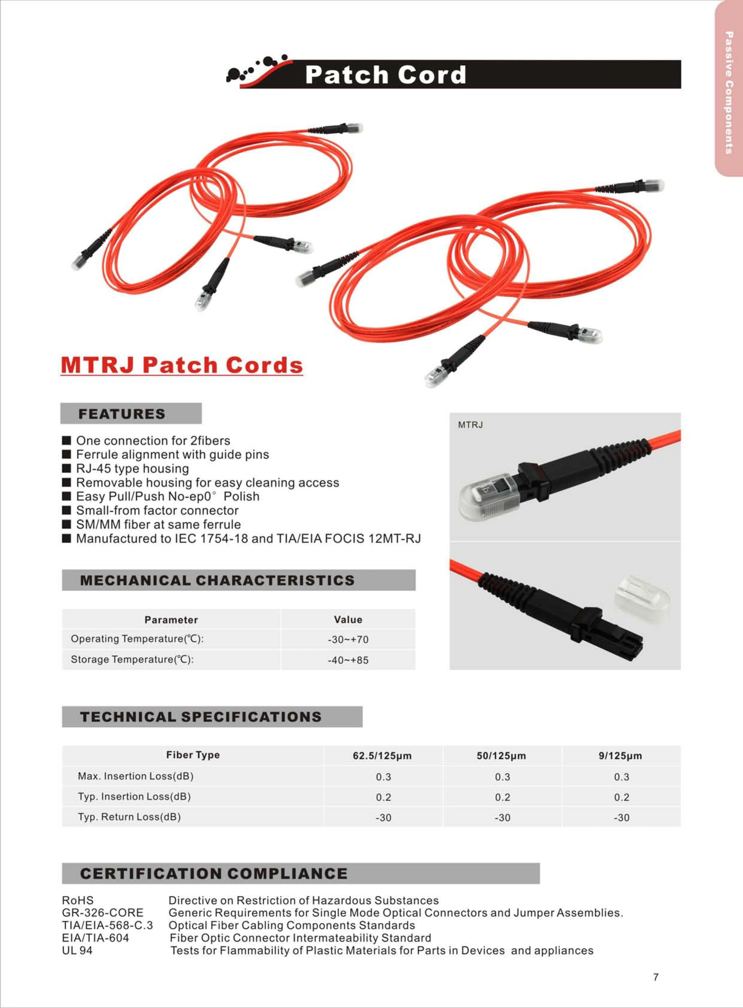 --- Низкая вставка и потеря отражения спины--- Хорошая заменяемость--- Хорошая прочность--- Высокая стабильность температуры--- Стандарт: Telcordia GR-326-COREПрименение: