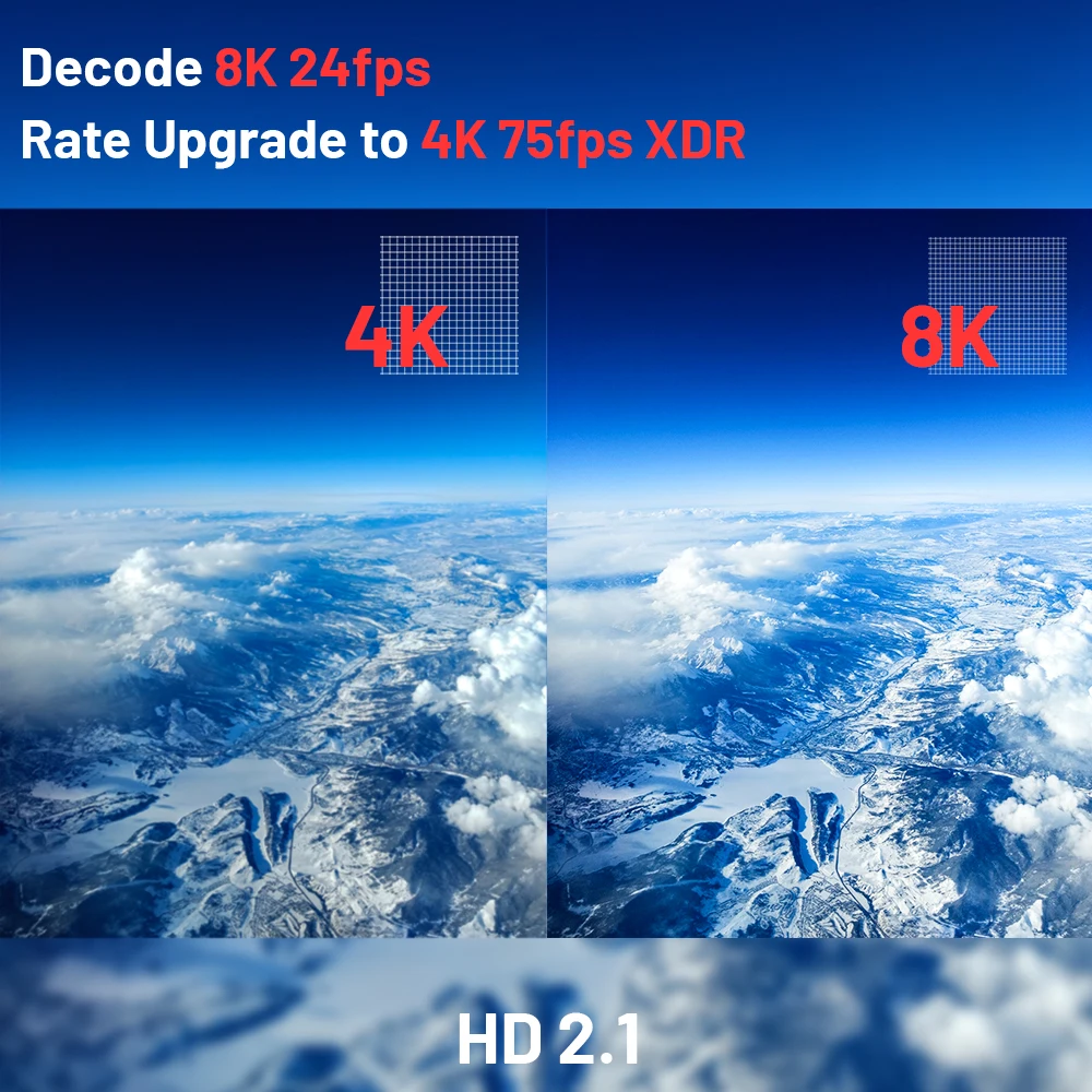 H.265, 8K @ 24fps, 4K @ 60fps, HD 2,1, USB3.0;