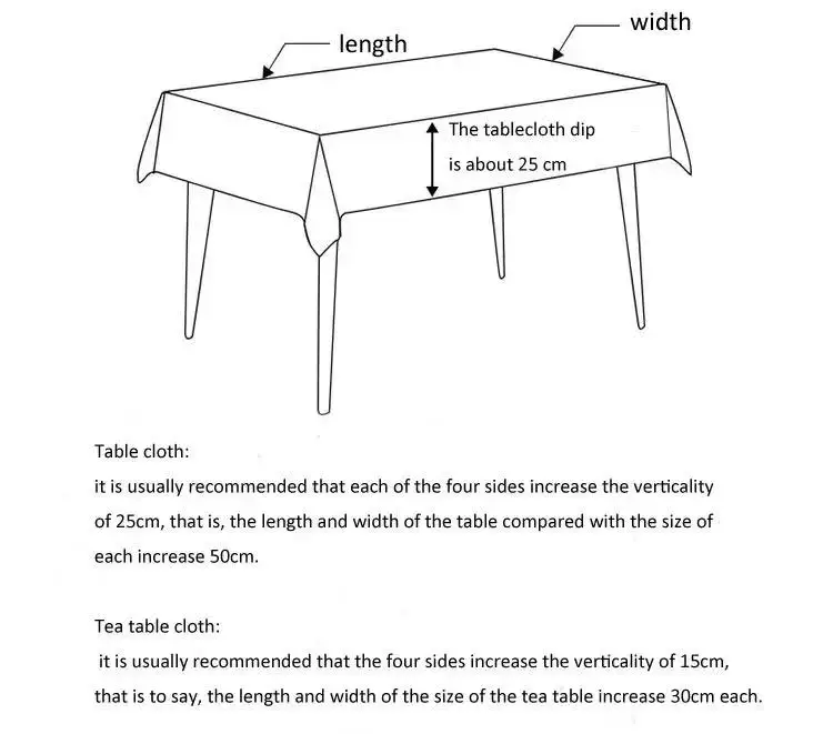Скатерть ширина = ширина стола + 2 раза выше, чем в размере Пси и МСИ, Нью-Йорк (25/30 см)