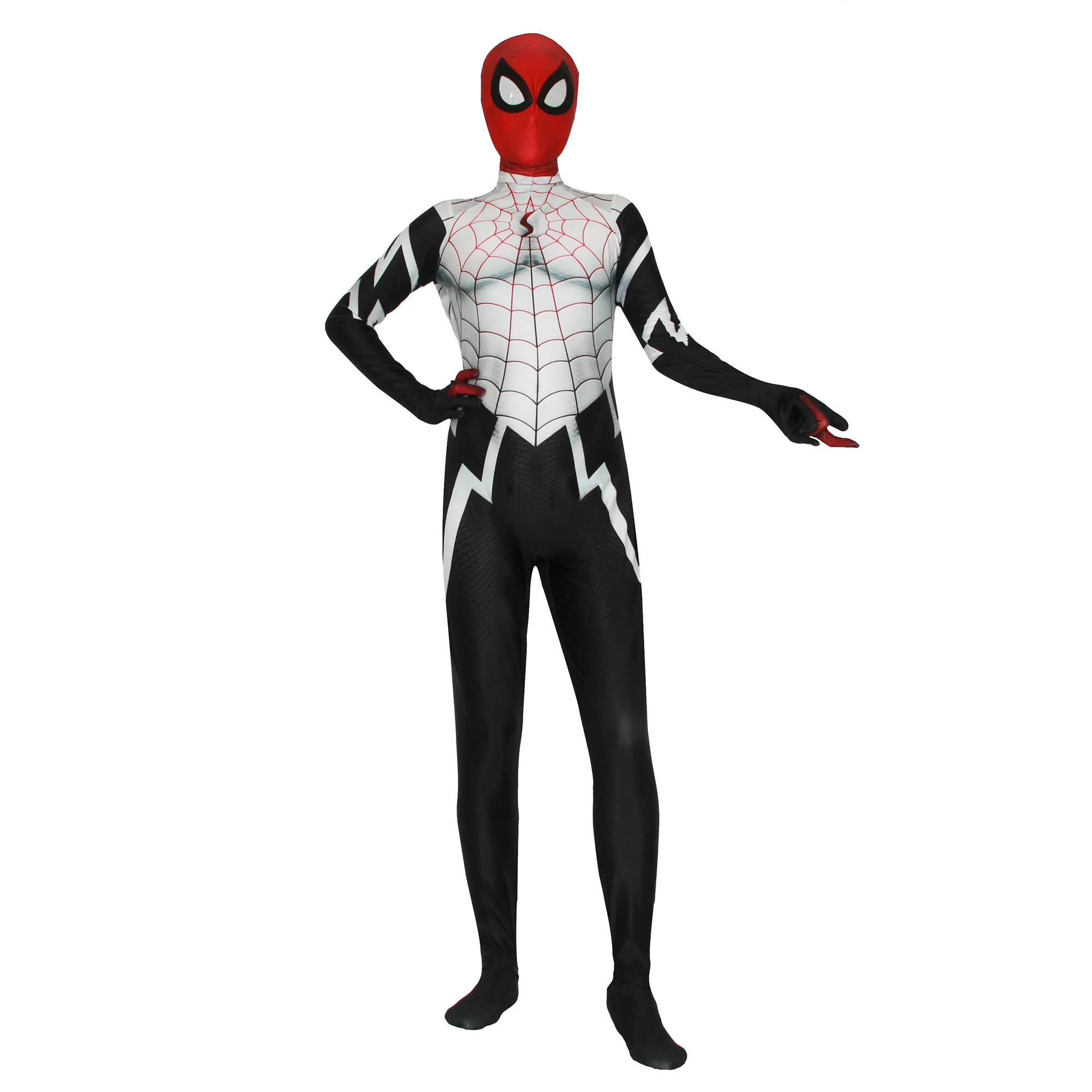 Удивительная особенность:Костюм покрывает вас от головы до носка, невидимая Вертикальная молния проходит вдоль задней части боди, вы можете носить его или снимать с нее, если вы хотите неразделяемую маску, пожалуйста, обратите на это внимание.