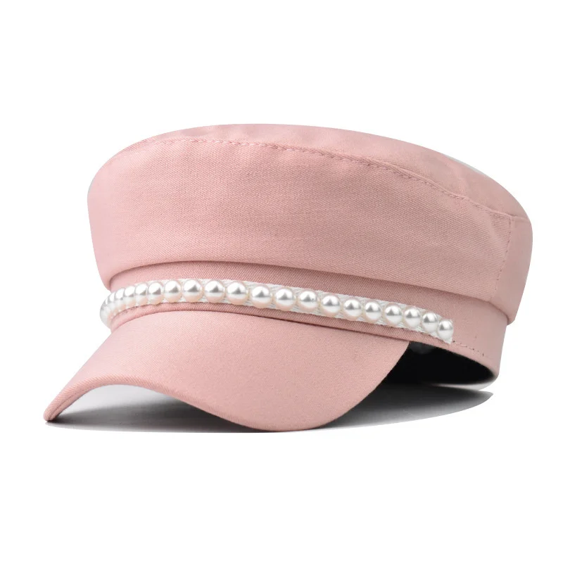 2021 модные весенние и осенние женские шапки с жемчужной цепочкой, однотонный Британский берет, тренд, уличная одежда, декорированная Кепка