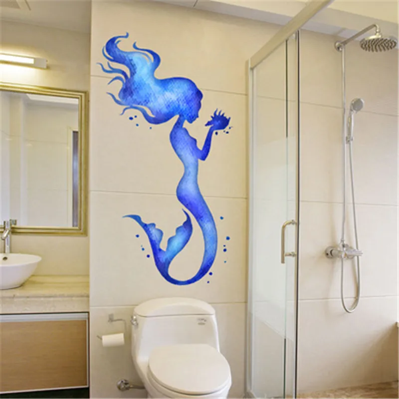 Настенная Наклейка Русалочка s для детских комнат домашний декор синий океан Русалка ванная декоративная наклейка виниловая настенная живопись наклейки Муро
