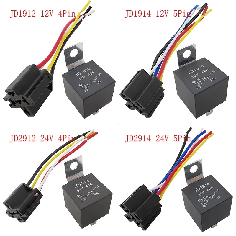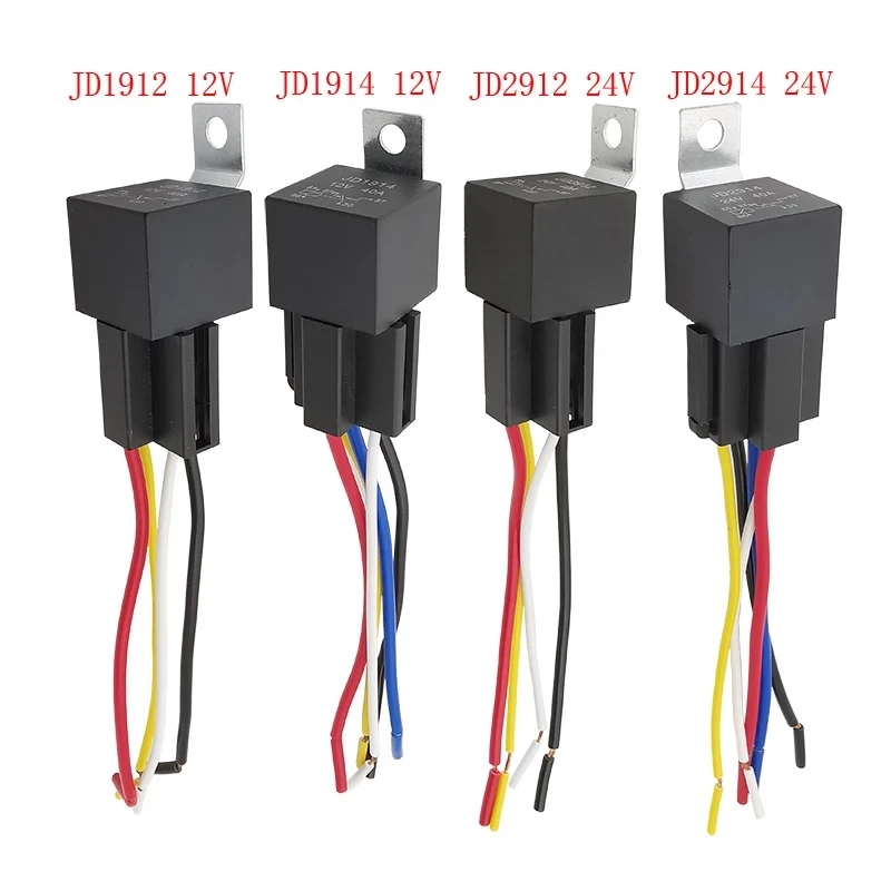 1 шт. водонепроницаемое автомобильное реле 12 В 24 В 40A 4P 5Pin автомобильное реле JD1912 JD1914 JD2912 JD2914 авто реле с жгутом