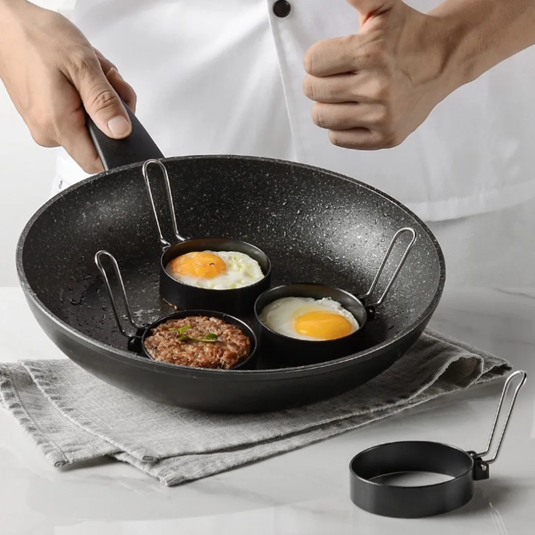 1. Он изготовлен из черной нержавеющей стали и может быть прочно помещен на сковороду или гриль с идеальным круглым яйцом. Вы будете горды, поставив их на гамбургеры. Профессиональные повара используют наши формы из нержавеющей стали для яичных колец, потому что они прочнее, чем силиконовые формы.