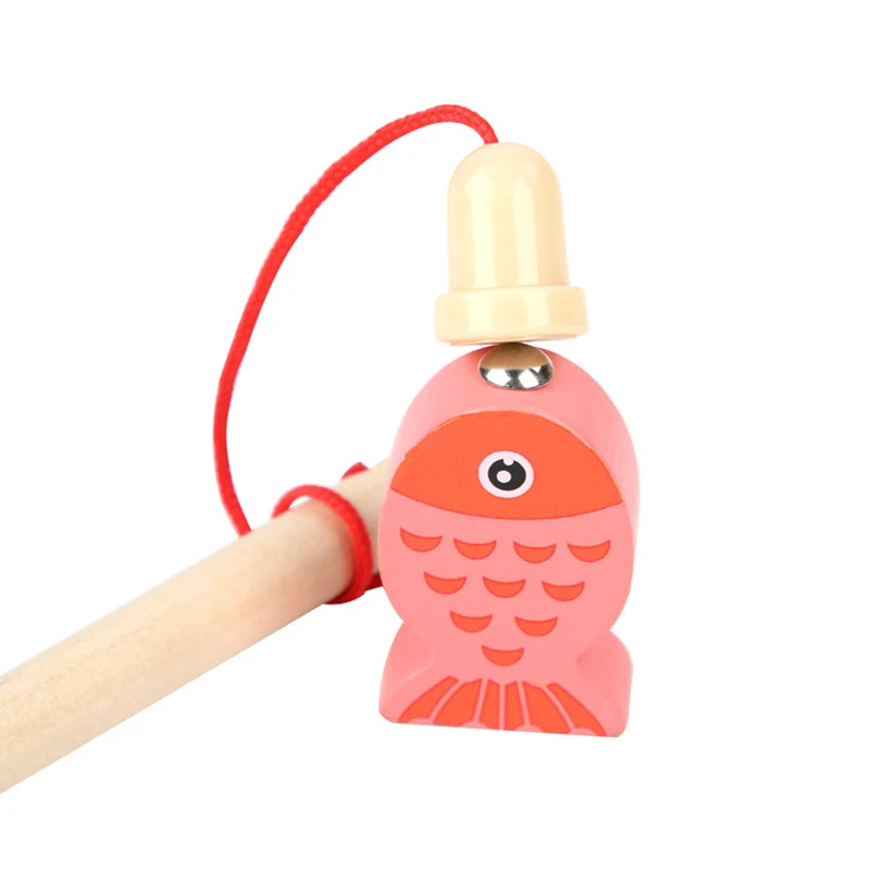 1.Lifelike fishing fun with wood fish and Pole