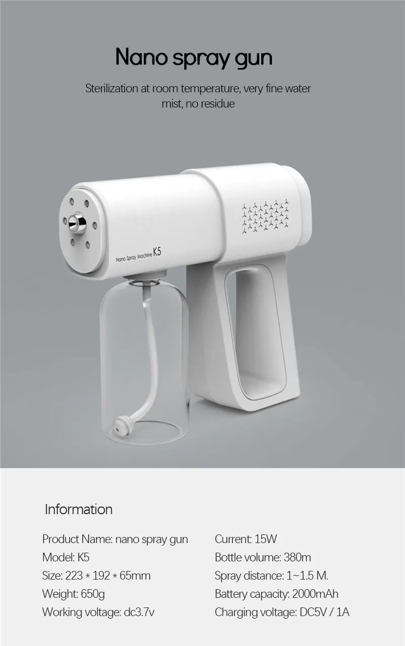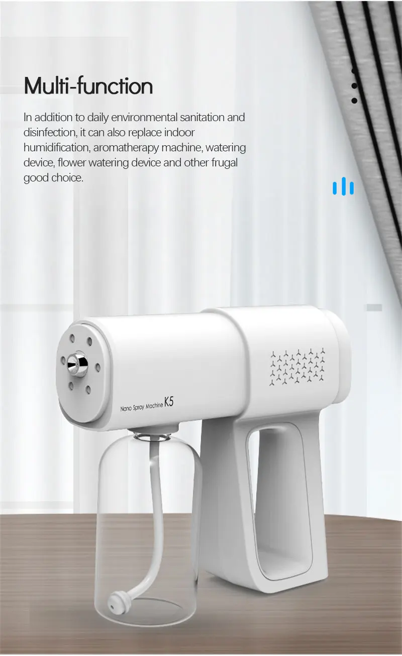 В дополнение к повседневной санитарно-гигиенической и дезинфекции, он также может заменить внутренние увлажнители, ароматерапевтические машины, пополняющие воду, устройства для полива и т. д.