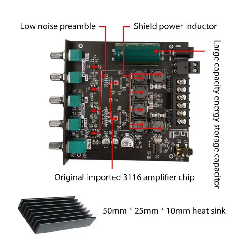 Источник питания платы очень важен. Пульсация выбранного источника питания должна быть небольшой. Источник питания с большой пульсацией вызовет шум в нижней части платы усилителя мощности, и там будет текущий звук. Чем выше напряжение, тем выше ток и тем больше выходная мощность. Если у вас есть только 12V 1a, можно взять с собой в 3-4 дюймовый динамик. Если вы старше 19 в 5А, без проблем 8-10 дюймов, питание должно быть придано большое значение. Если напряжение слишком низкое, усиление звука легко вызывает искажение звука. Если ток слишком мал для поднятия, рог вытягивает напряжение, работает аномально или качество звука становится плохим.