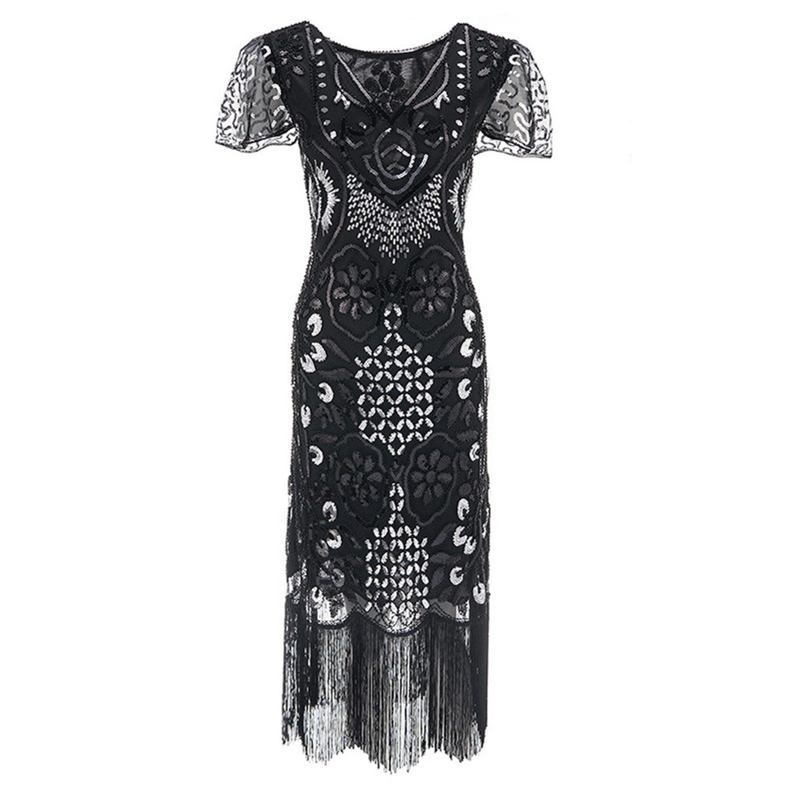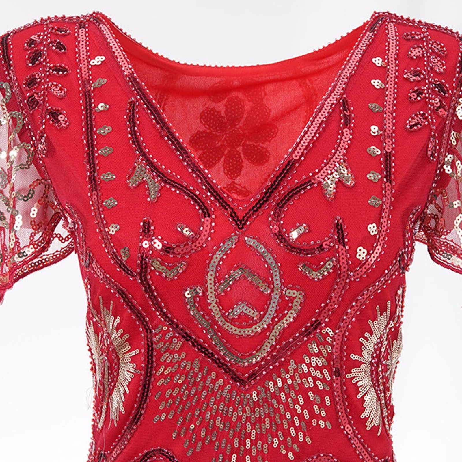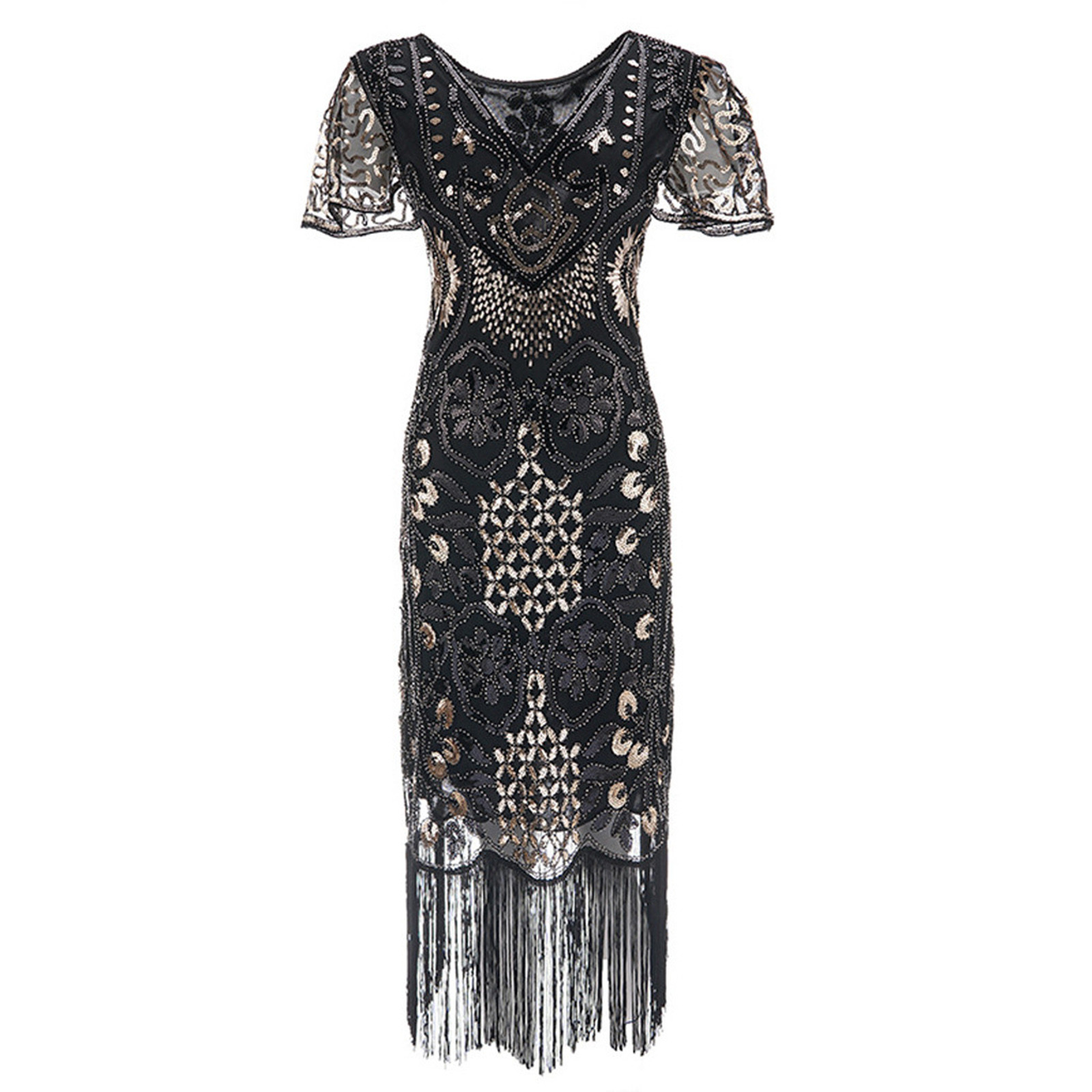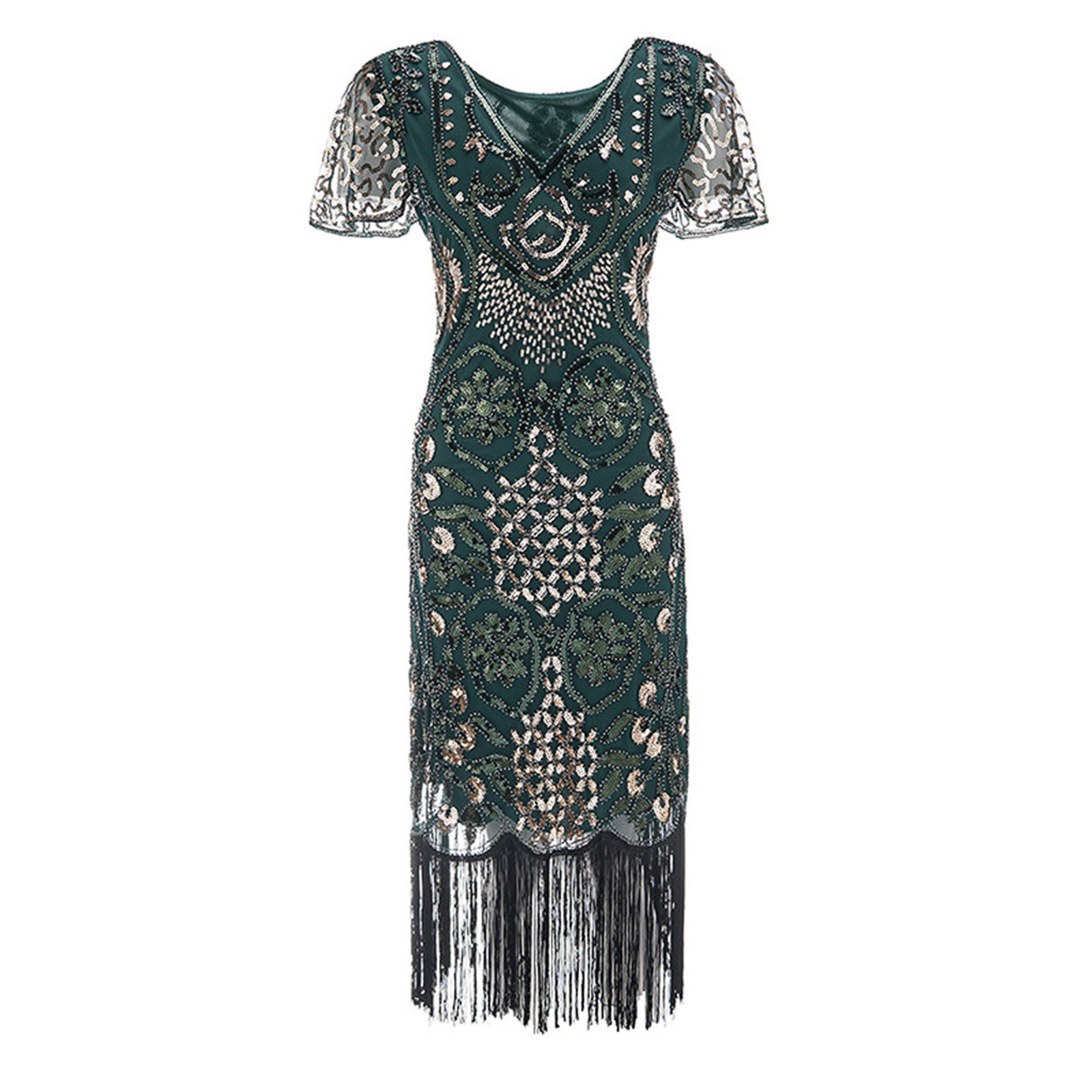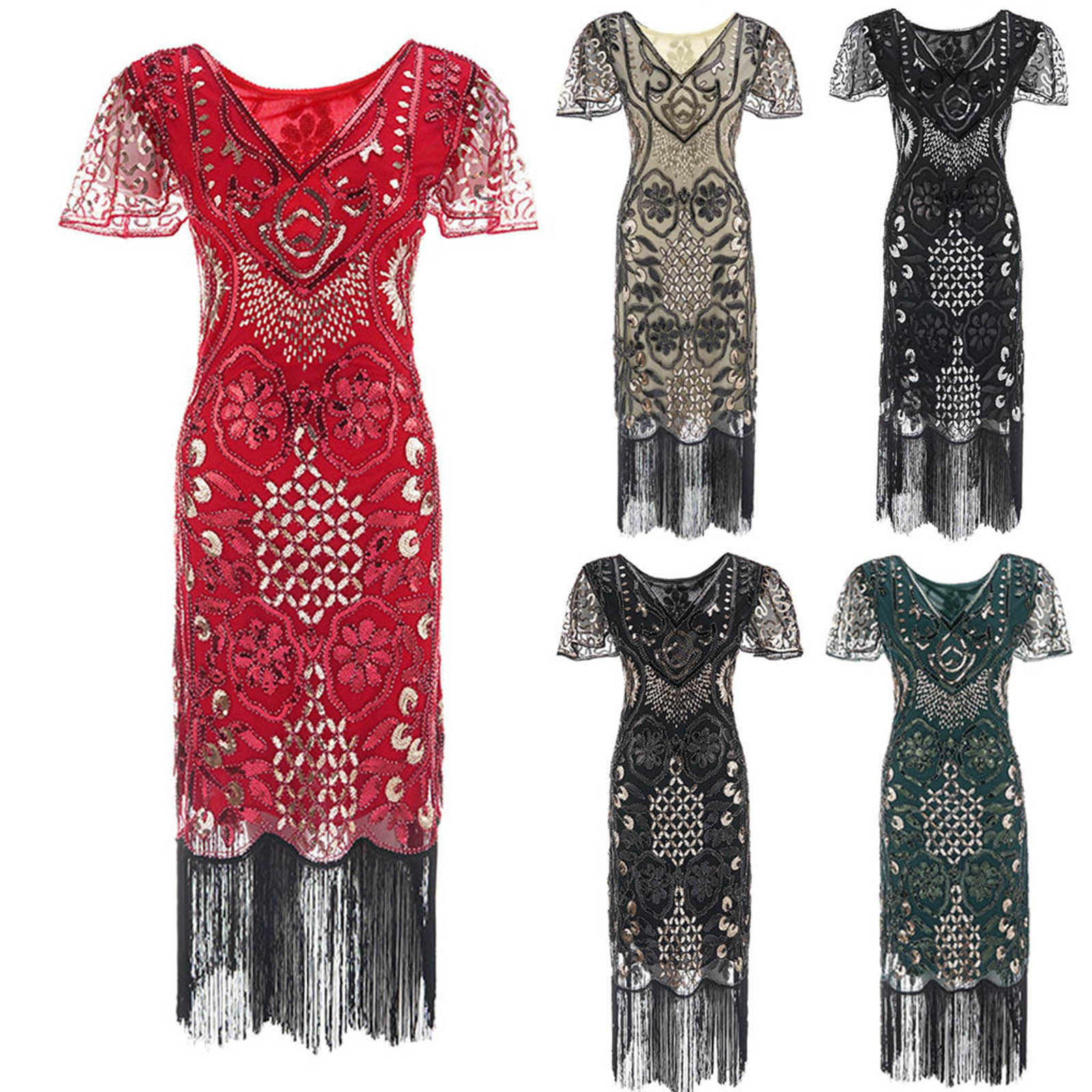 3.V-Шея,КороткийРукав,МидиДлина,Затяните на застежке,Винтажное платье с бахромой по подолу.Очаровательно и привлекательно.Покажите свои изгибы с шармом.