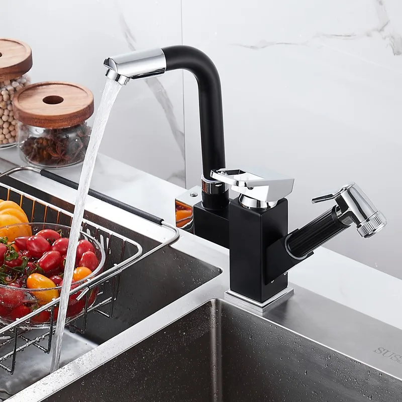 Смеситель для кухонной раковины, черный, на бортике, гибкий, выдвижной, смеситель для горячей и холодной кухни, кран с пружинным носиком, хромированный, серебристый кран