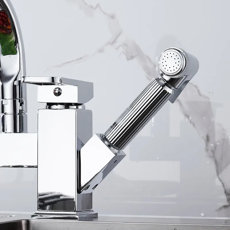 Функция: кран для горячей/холодной кухонной раковины (шланг в комплект не входит) Материал корпуса смесителя: нержавеющая сталь Материал ручки смесителя: сплав Ручной опрыскиватель Материал: АБС-пластик