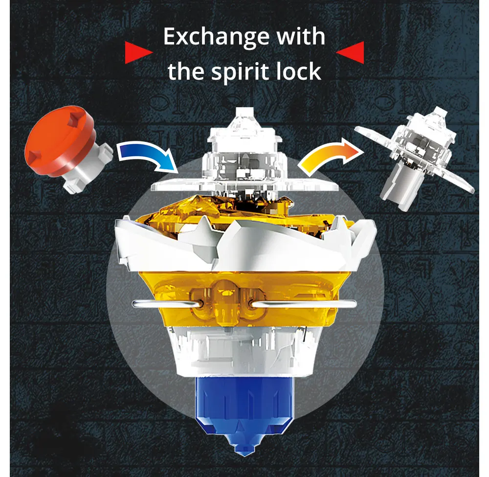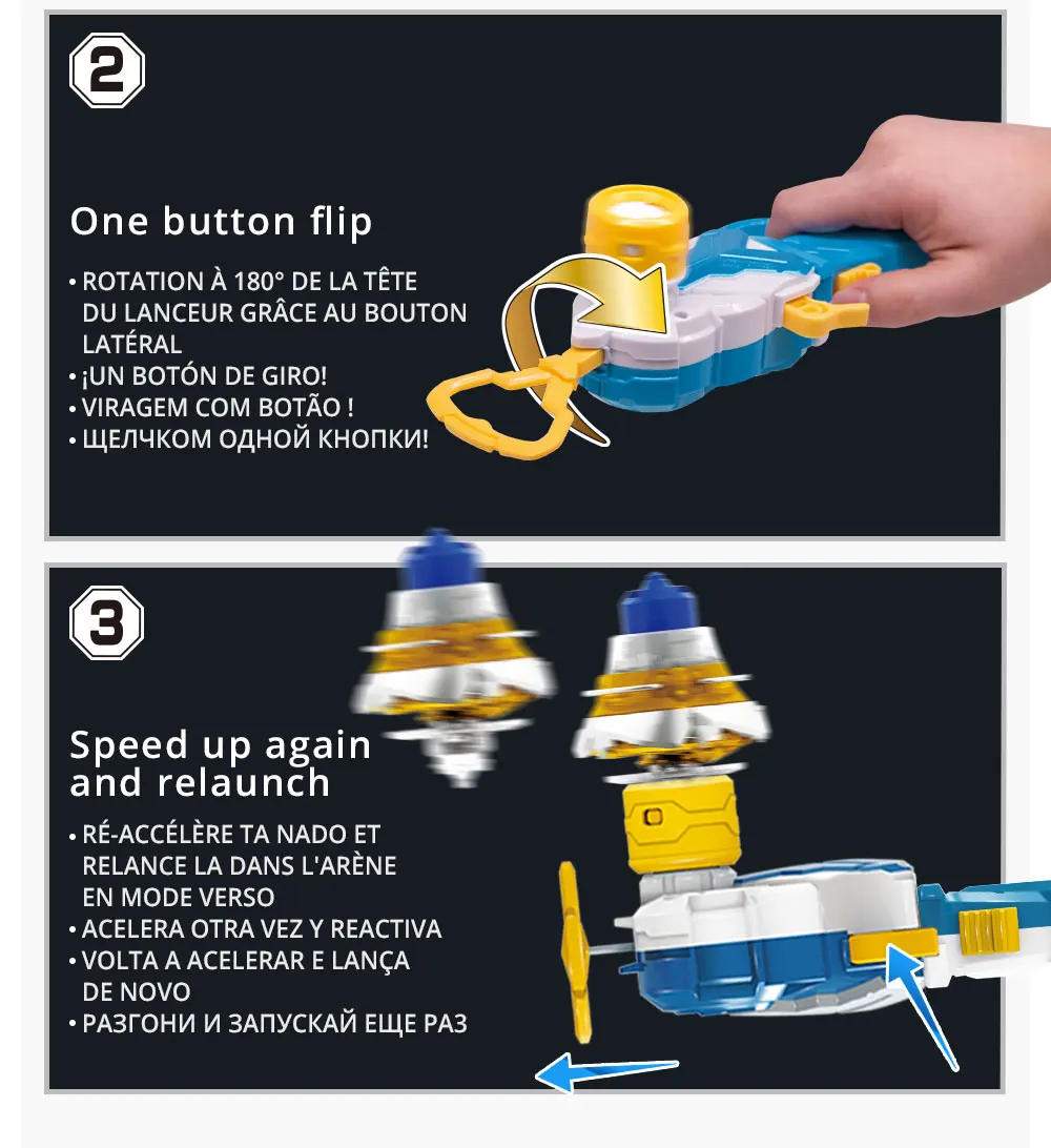Эксклюзивный, боевой нон-стоп топы с двойным острым спиннингом: вы можете бросить их на арену с обеих сторон, чтобы выбрать позиционирование ваших атак и защитных колец!