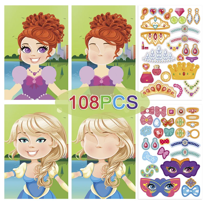 Товары включают в себя: 6 смайликов + 3 наклейки (93 шт. для животных и динозавров, 108 шт. для принцесс)