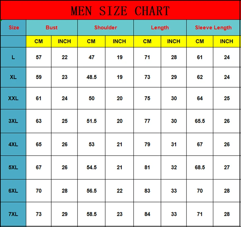 Таблица размеров-это Азиатский размер (меньше, чем размер США и евро), возможно, вы можете выбрать на 1 размер больше, чем обычно.