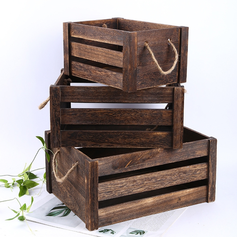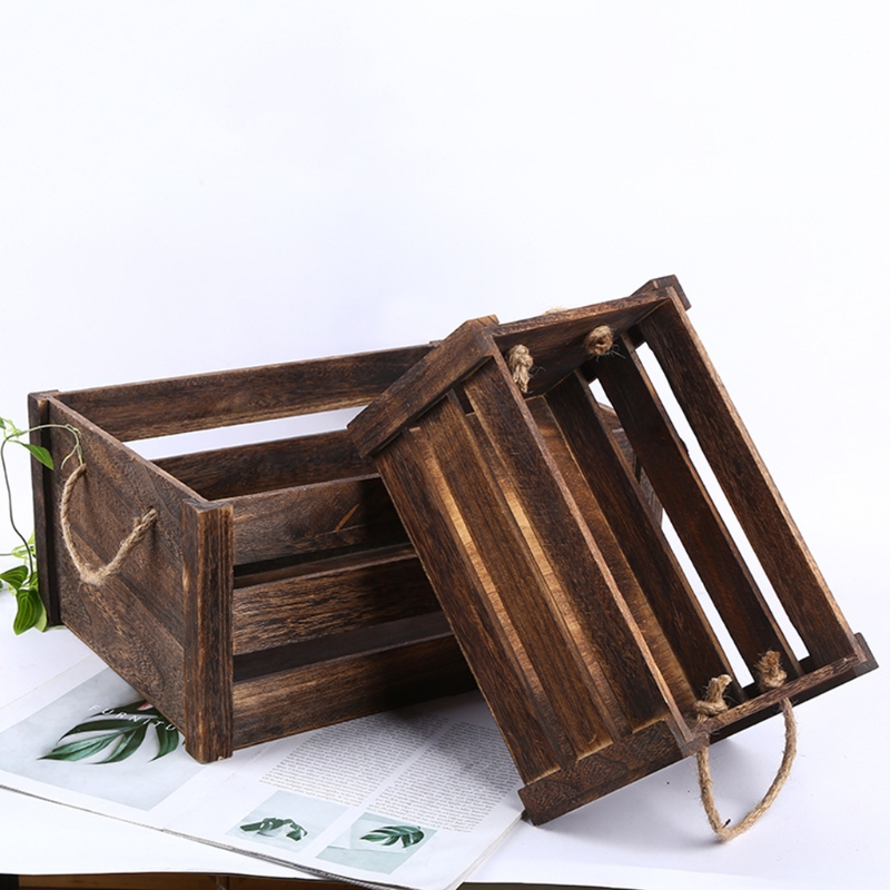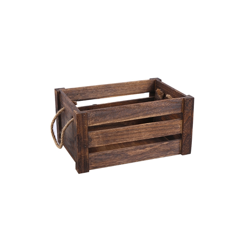 Креативная Бытовая деревянная прямоугольная корзина для хранения с веревочной ручкой винтажный деревенский полый органайзер ящик ящики