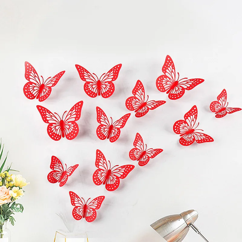 3D наклейки на стену с бабочками, украшение для дома, имитация, наклейка для спальни, гостиной, художественный дизайн, наклейка с бабочками, 12 шт./компл.