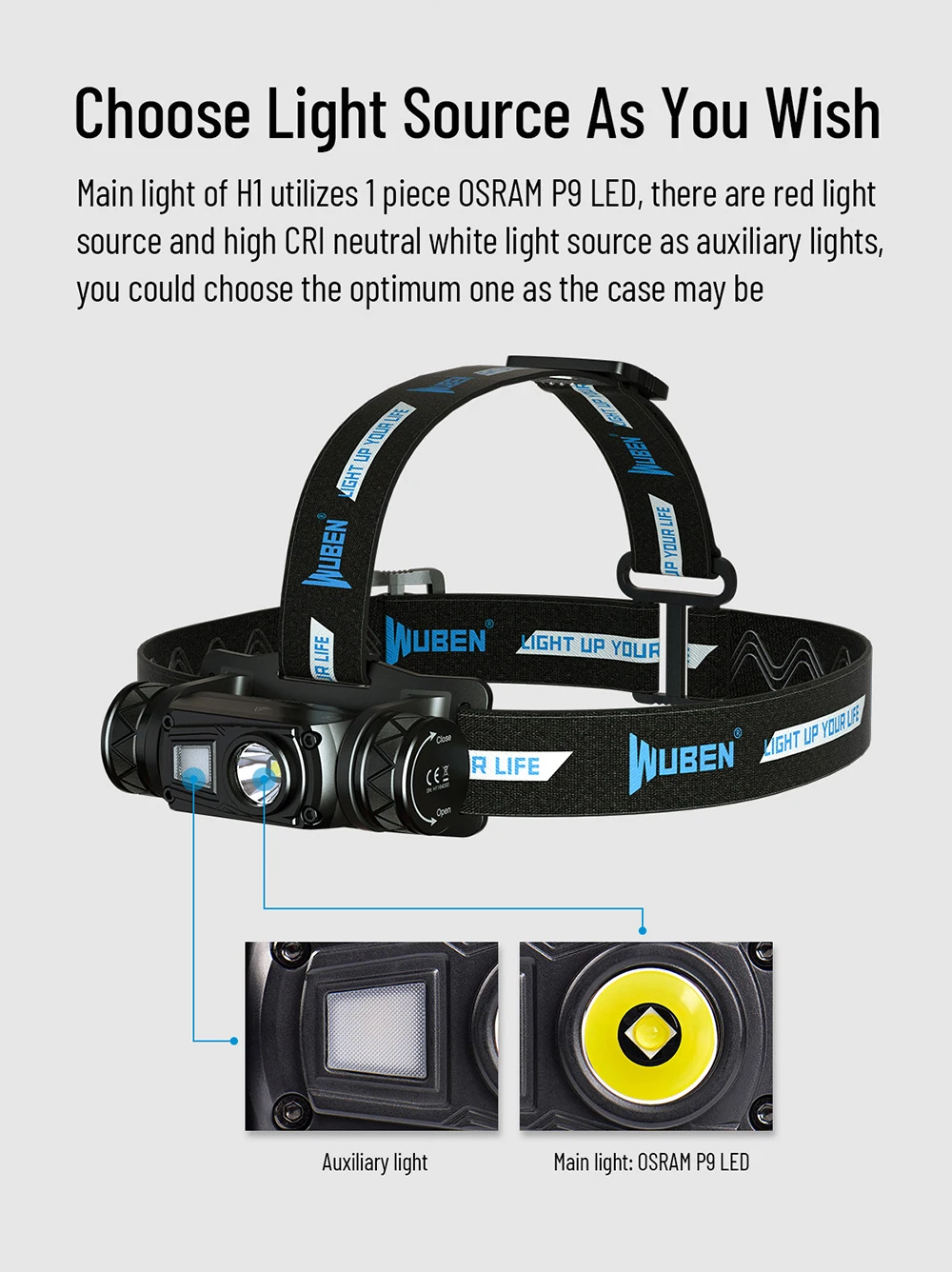 WUBEN H1 налобный фонарь с перезаряжаемой высокомощной головкой 1200 люмен P8 светодиодный фонарь с аккумулятором 2600 мАч легкий для рыбалки