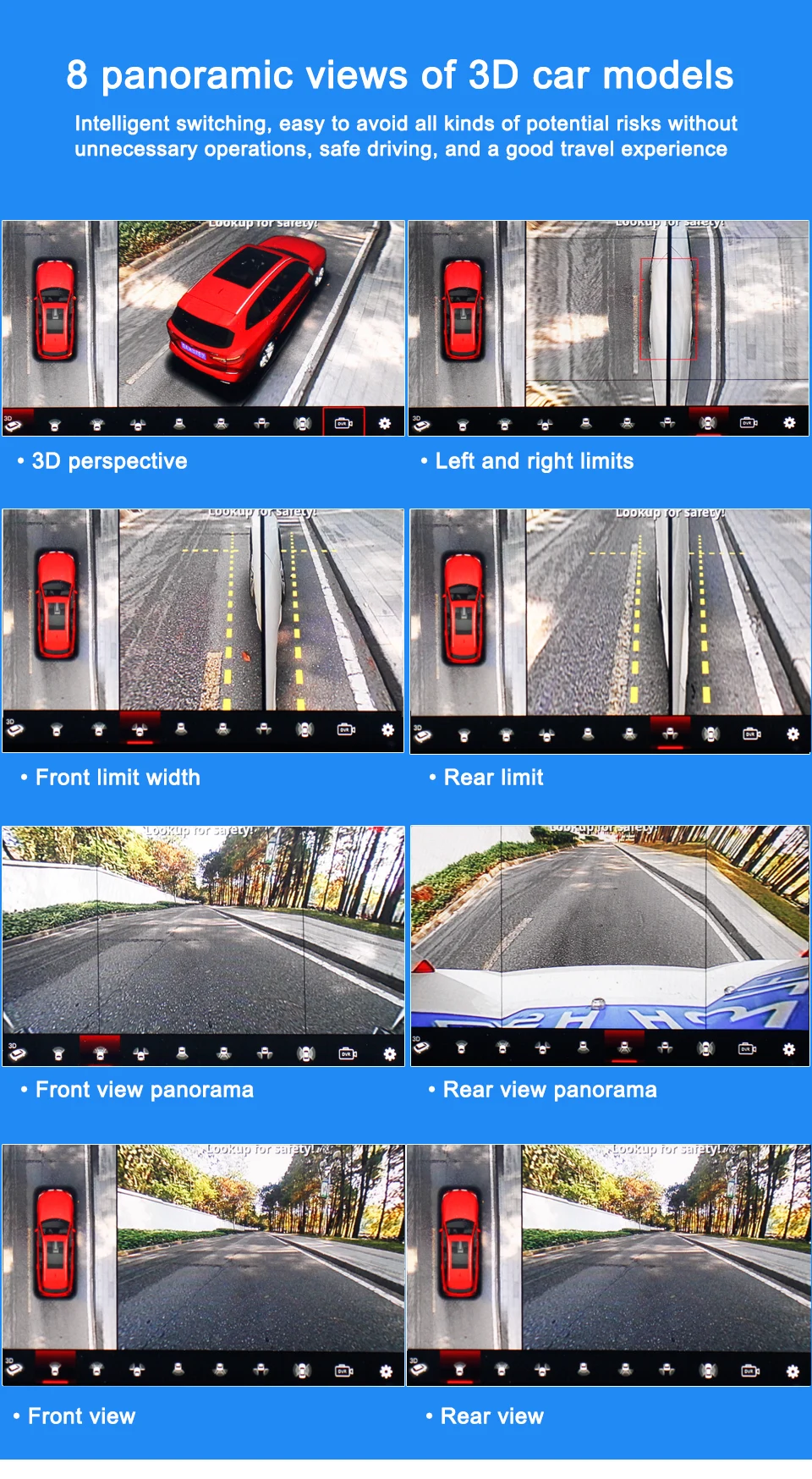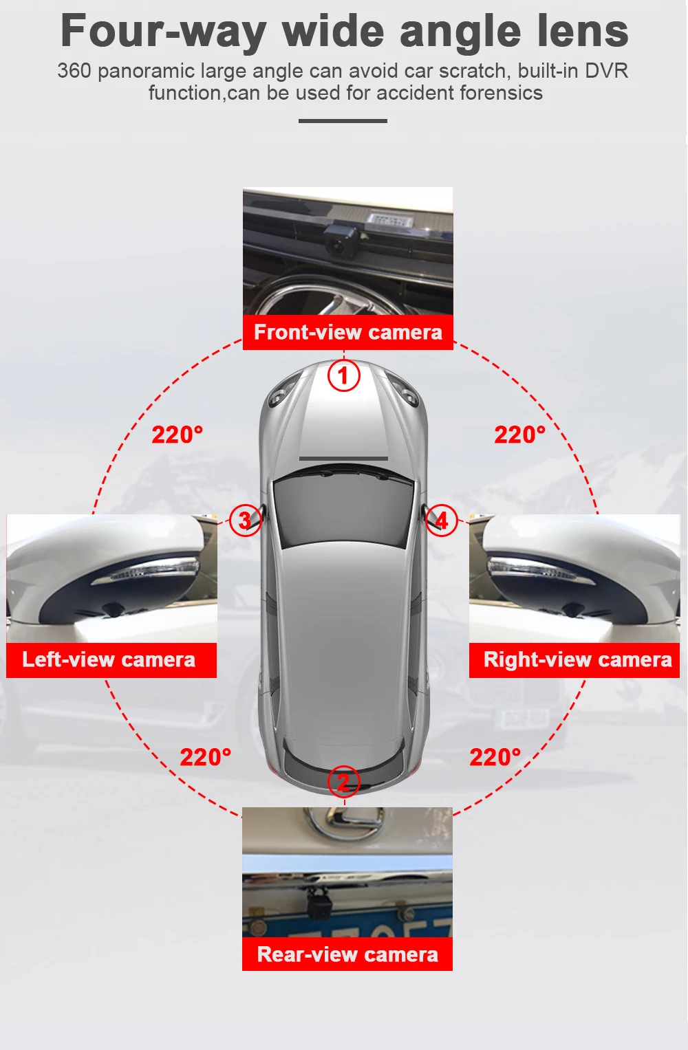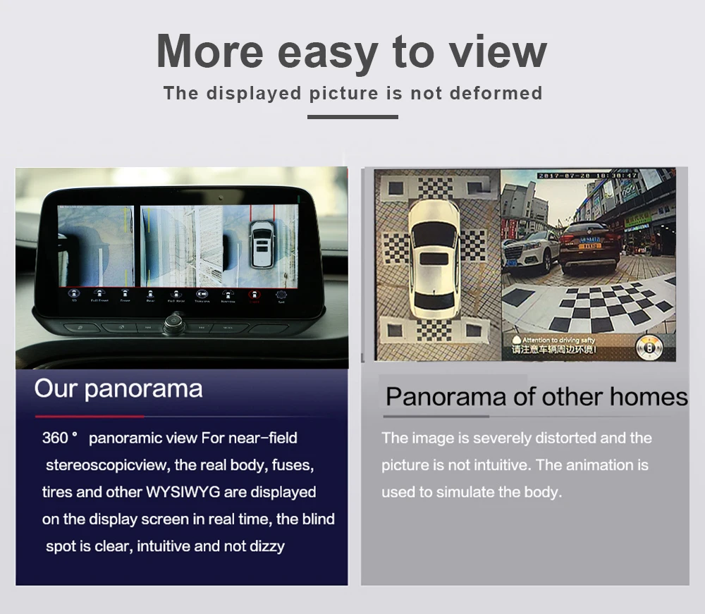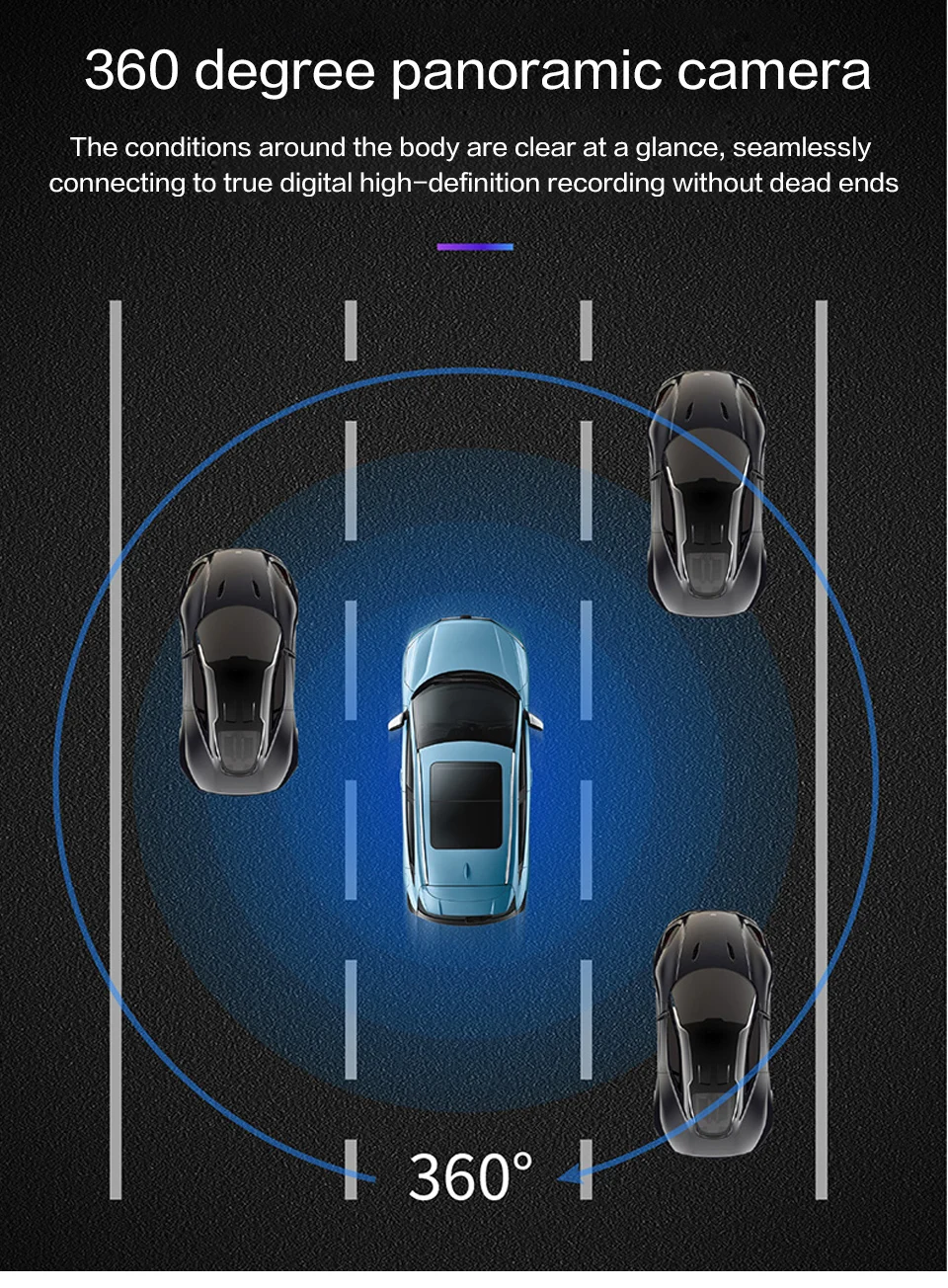 1. Knob control: One key to turn on /turn off 360, various view angles can be switched instantly;