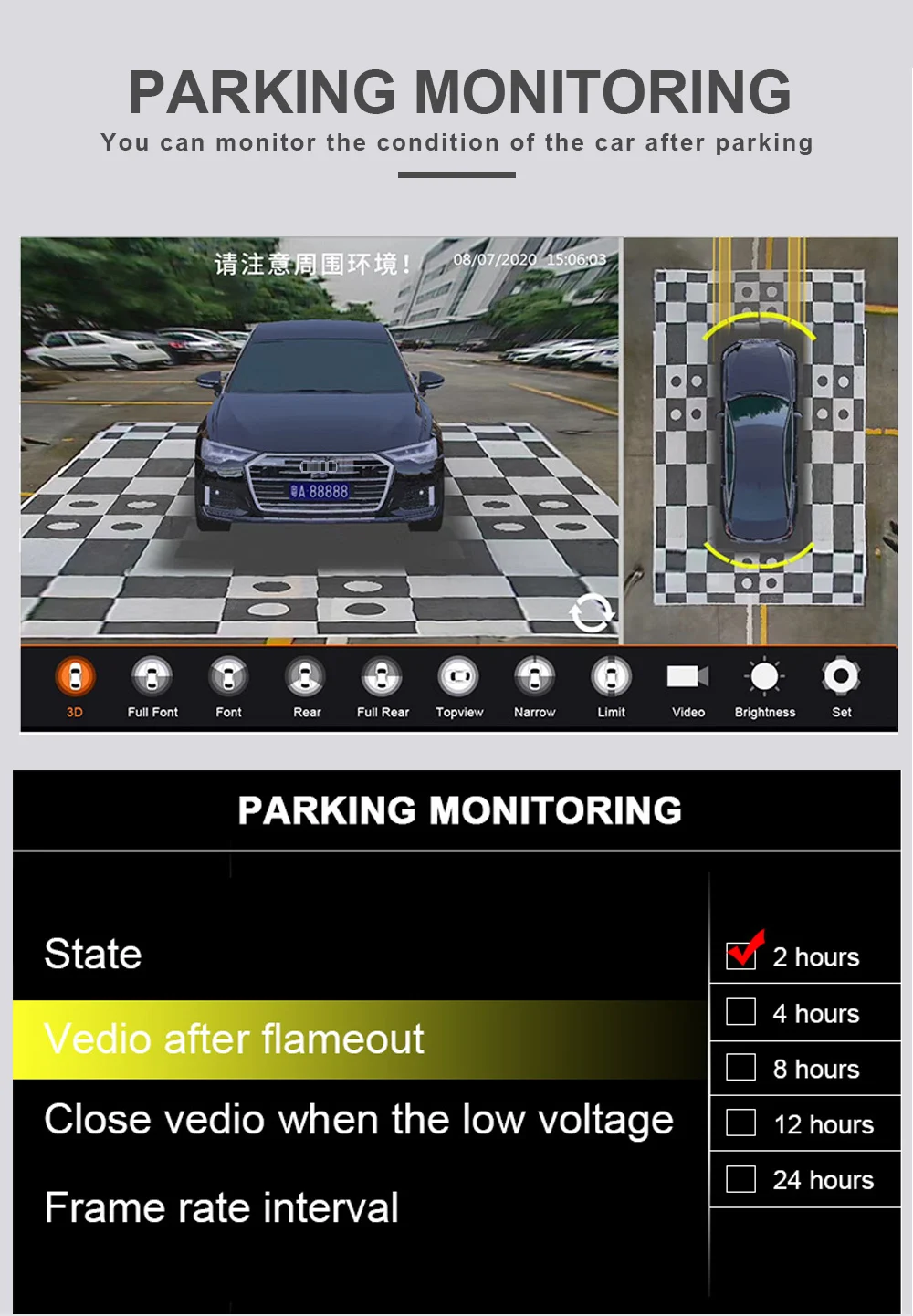 9. parking monitoring, can set 2-24 hours