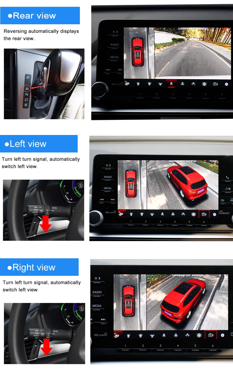 3. after car start, automatically circular display, also can adjust angle by remote