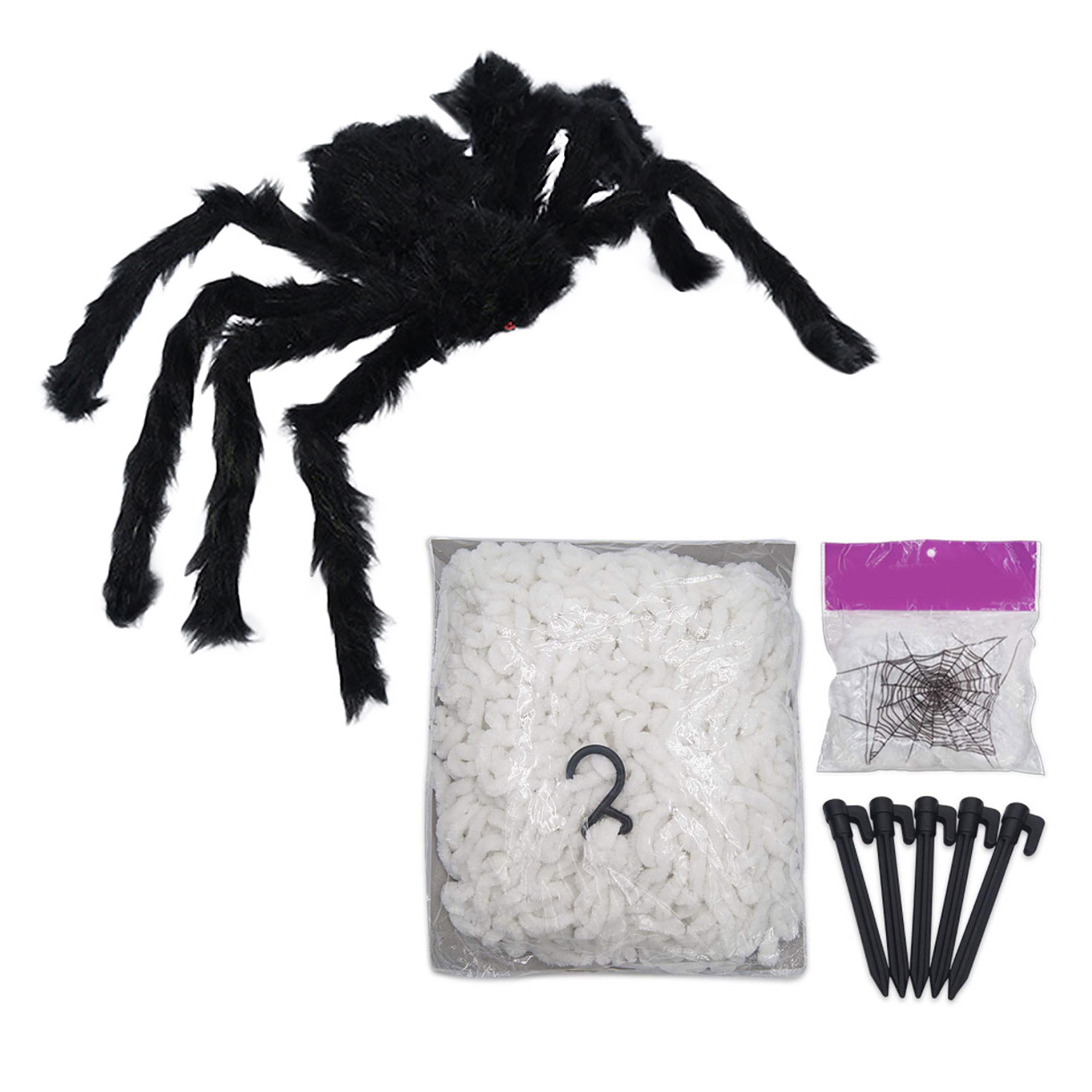 Гигантский паук набор Сеть:1 гигантская Паутина (16 футов * 15 футов) + огромный Хэллоуин Пауки, 1 крючок (для желоба), 5 гвоздей (для Земли) и 40 г имитация Хлопок-паук. Поставляется с 2 маленькими жуткими пауками для улучшения Хэллоуина Атмосфера! Все в одном наборе, супер пакет для украшения Хэллоуина.