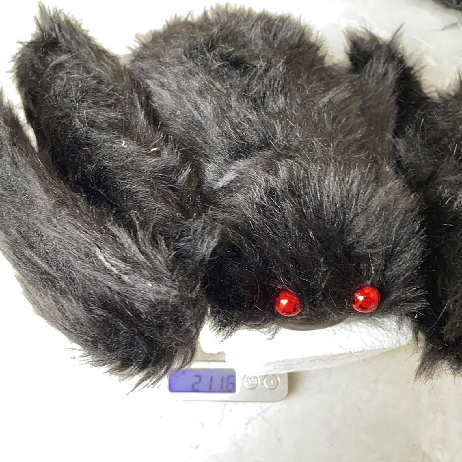 Плюшевый жуткий паук, ноги свободно гнутся и растягиваются Позы вам нравятся, легко носить с собой, жуткий паук может быть подарком на Рождество и Хэллоуин, а также для дома и украшения на открытом воздухе.