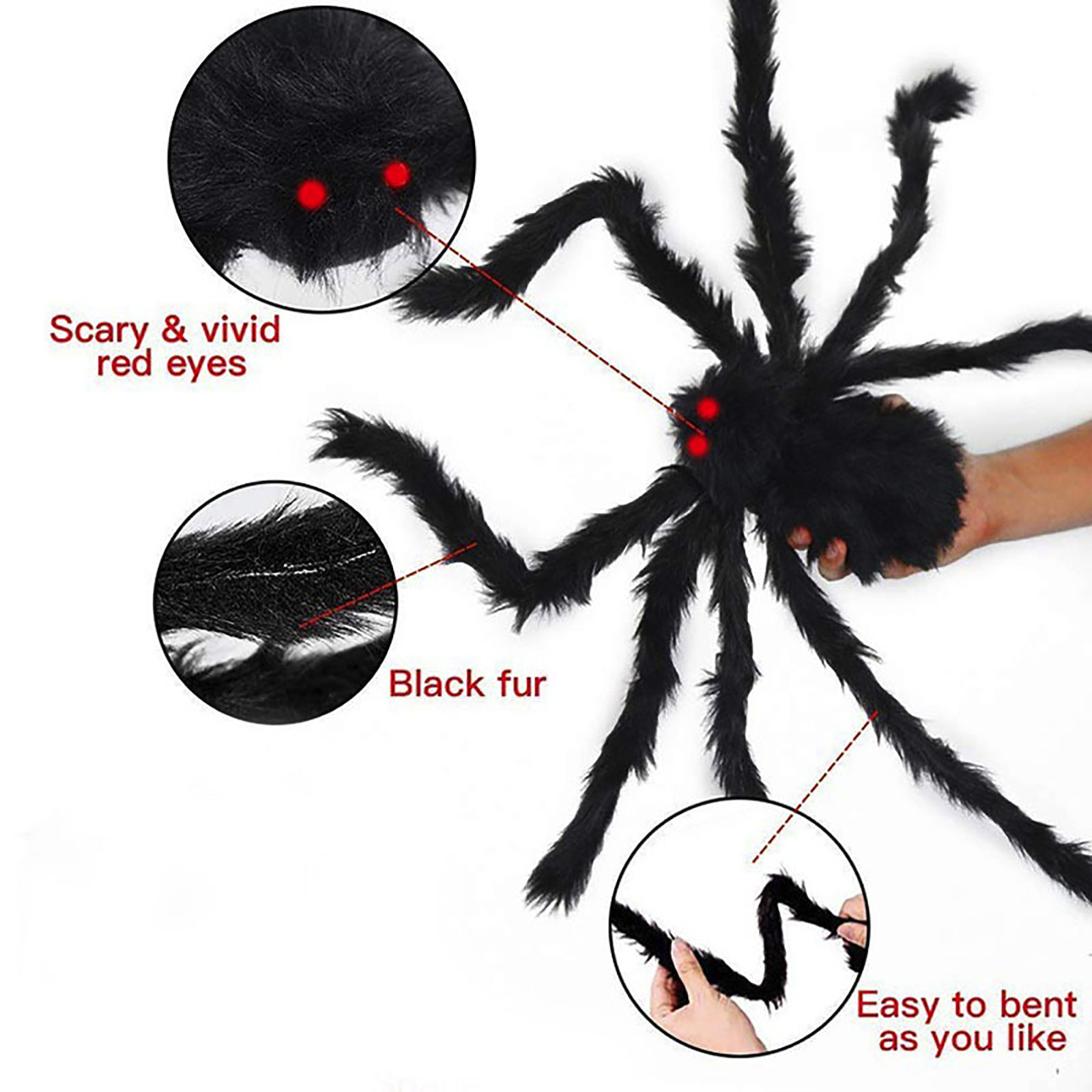 Яркий и страшный дизайн:Черный пушистый паук с страшными красными глазами Тело ощущается и выглядит настоящим. Прикрепите огромные паутинки хорошо, потрясающе и жутко, сделайте Ваша главная тема Хэллоуина. Завоевывает внимание детей и взрослых Карнавал призрака, маскарад, Хэллоуин, трюк или лечение.
