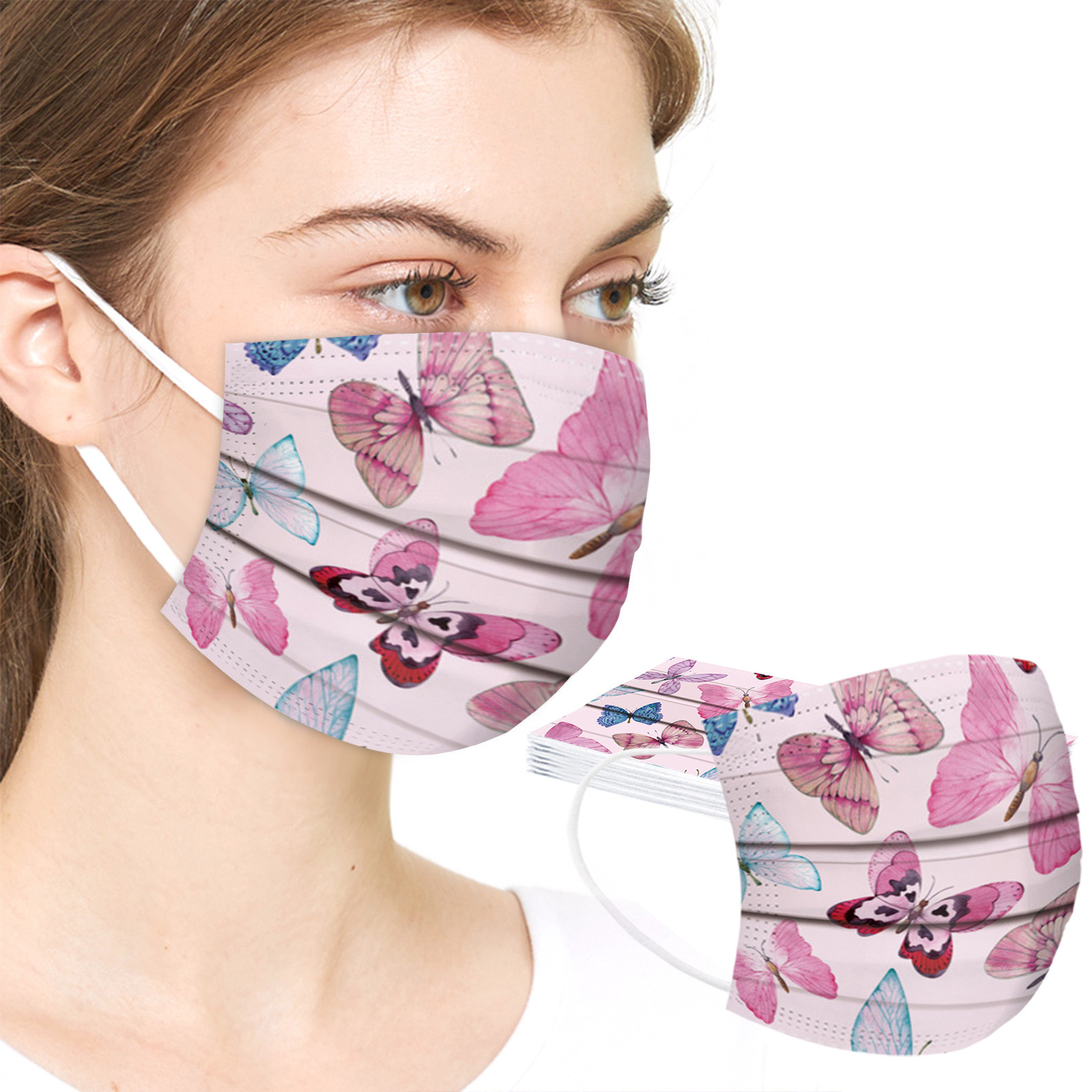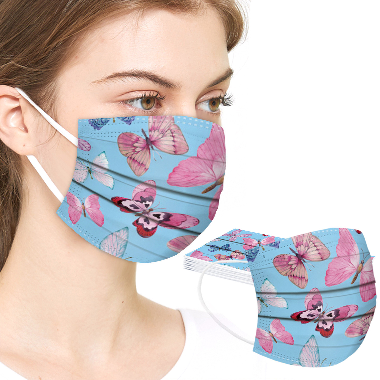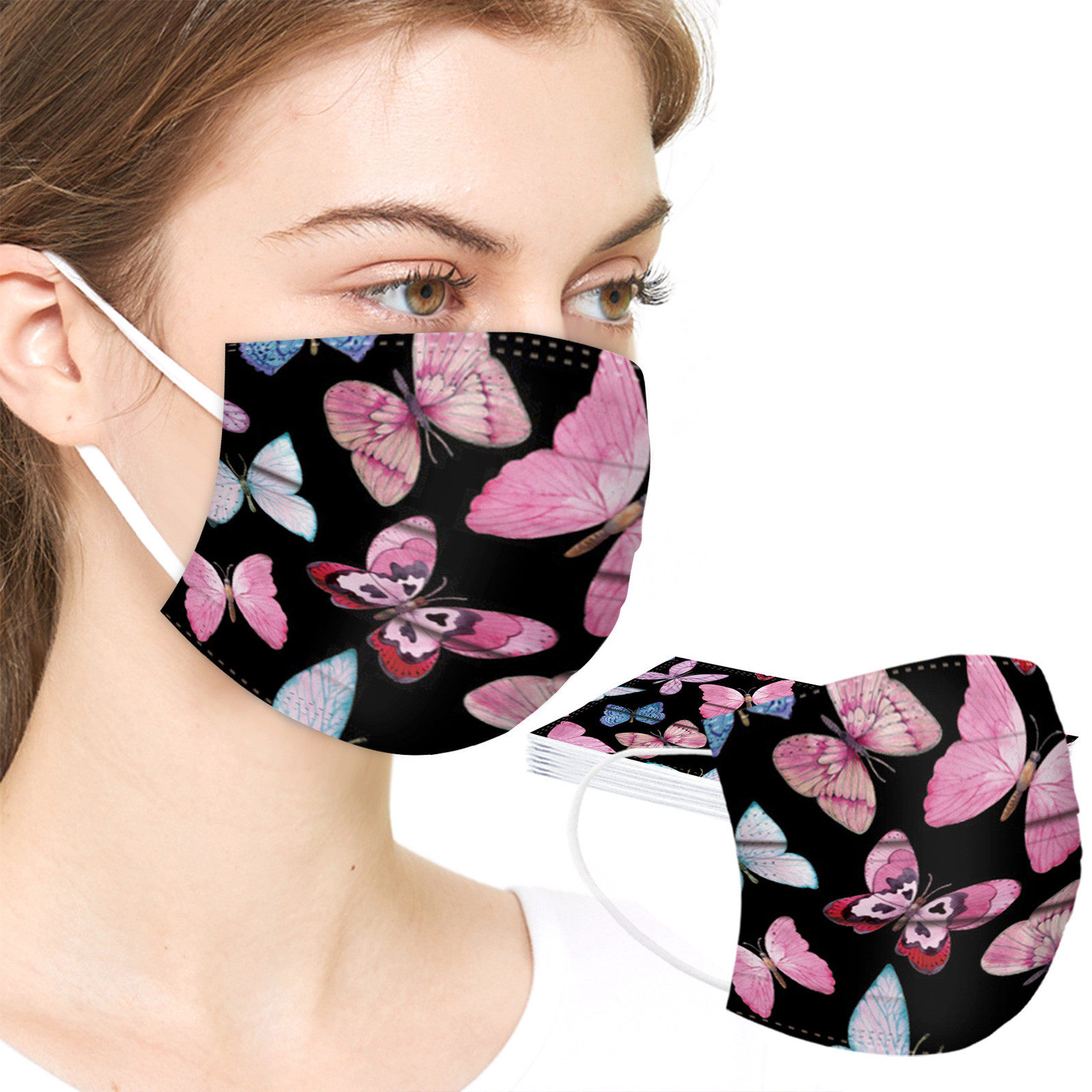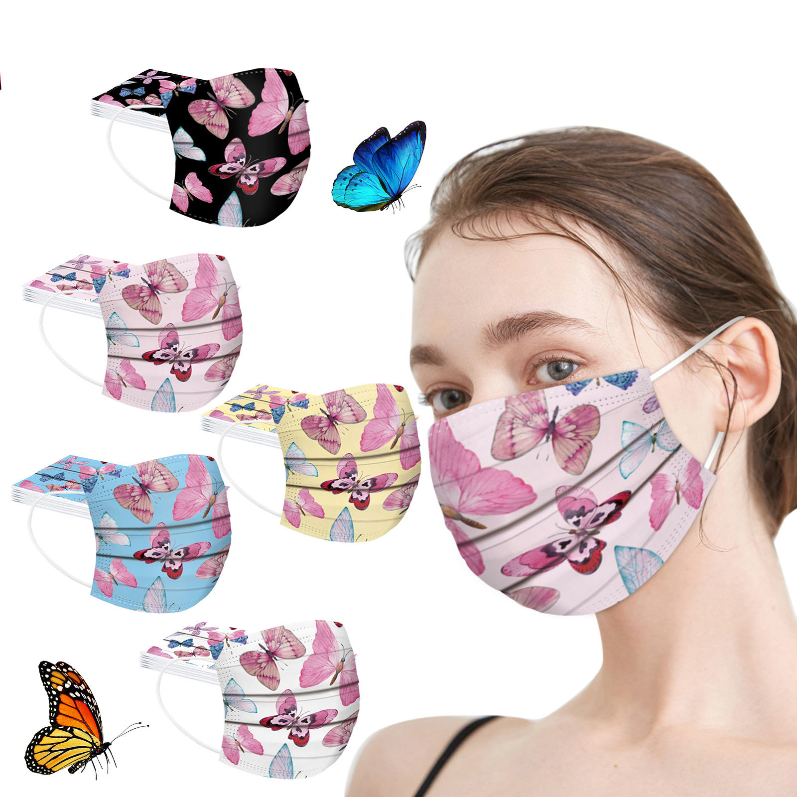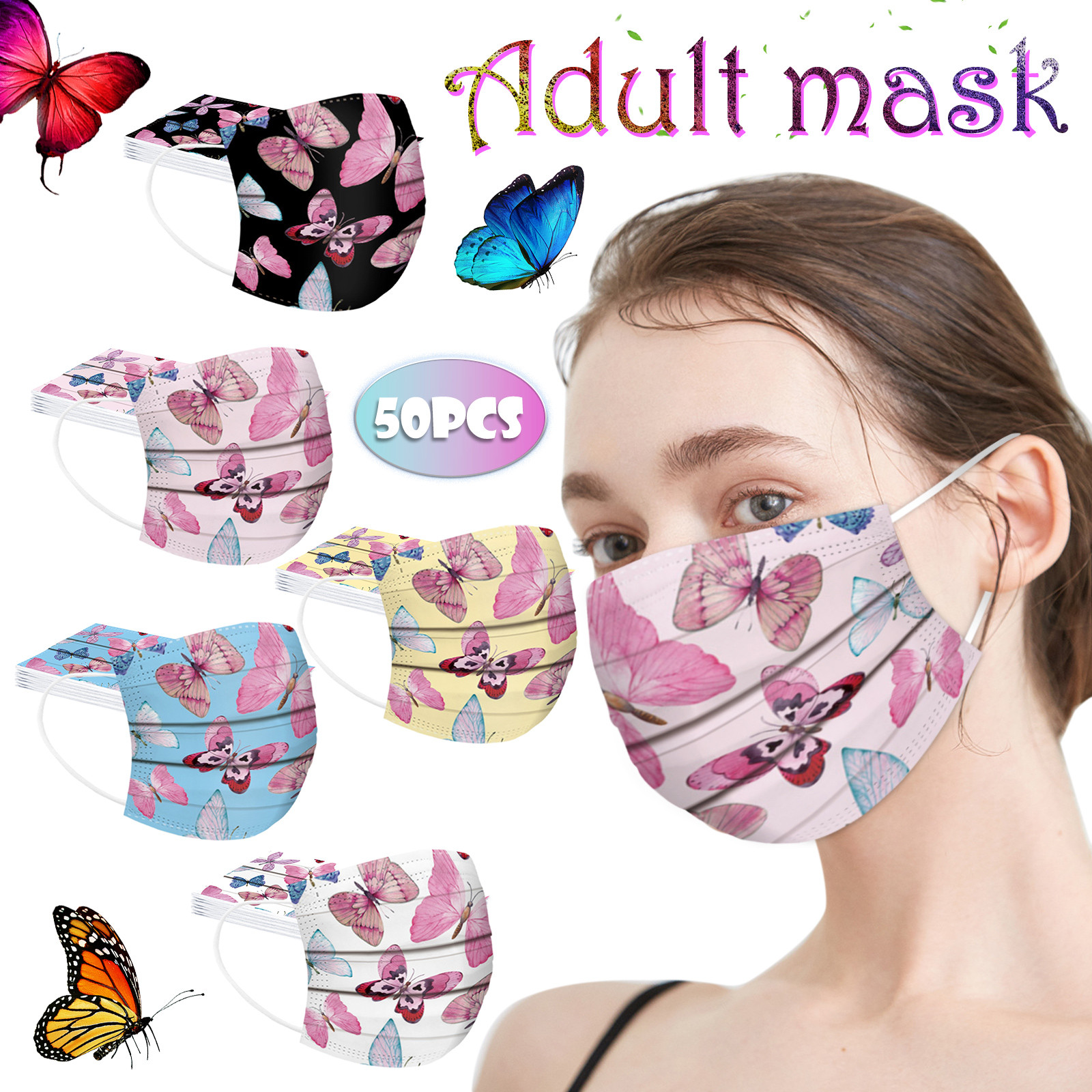 50 шт. маски с принтом бабочки для взрослых одноразовые защитные маски для лица