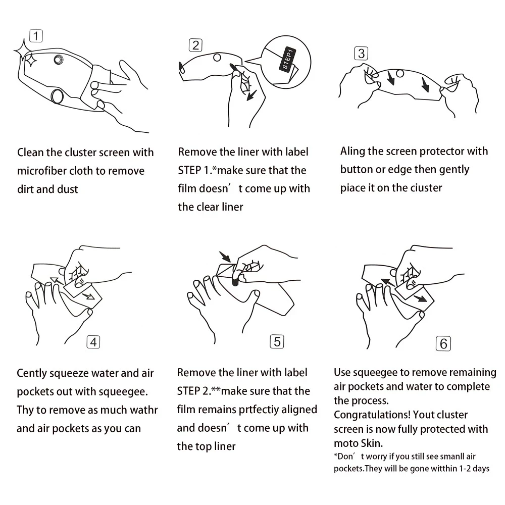 7: Используйте выдавливание, чтобы удалить оставшиеся карманы воздуха и воды для завершения процесса. Поздравляем! Ваш экранный кластер теперь полностью защищен нашим продуктом.